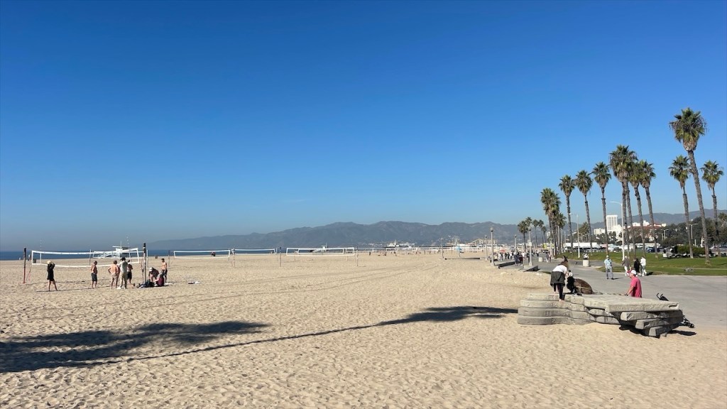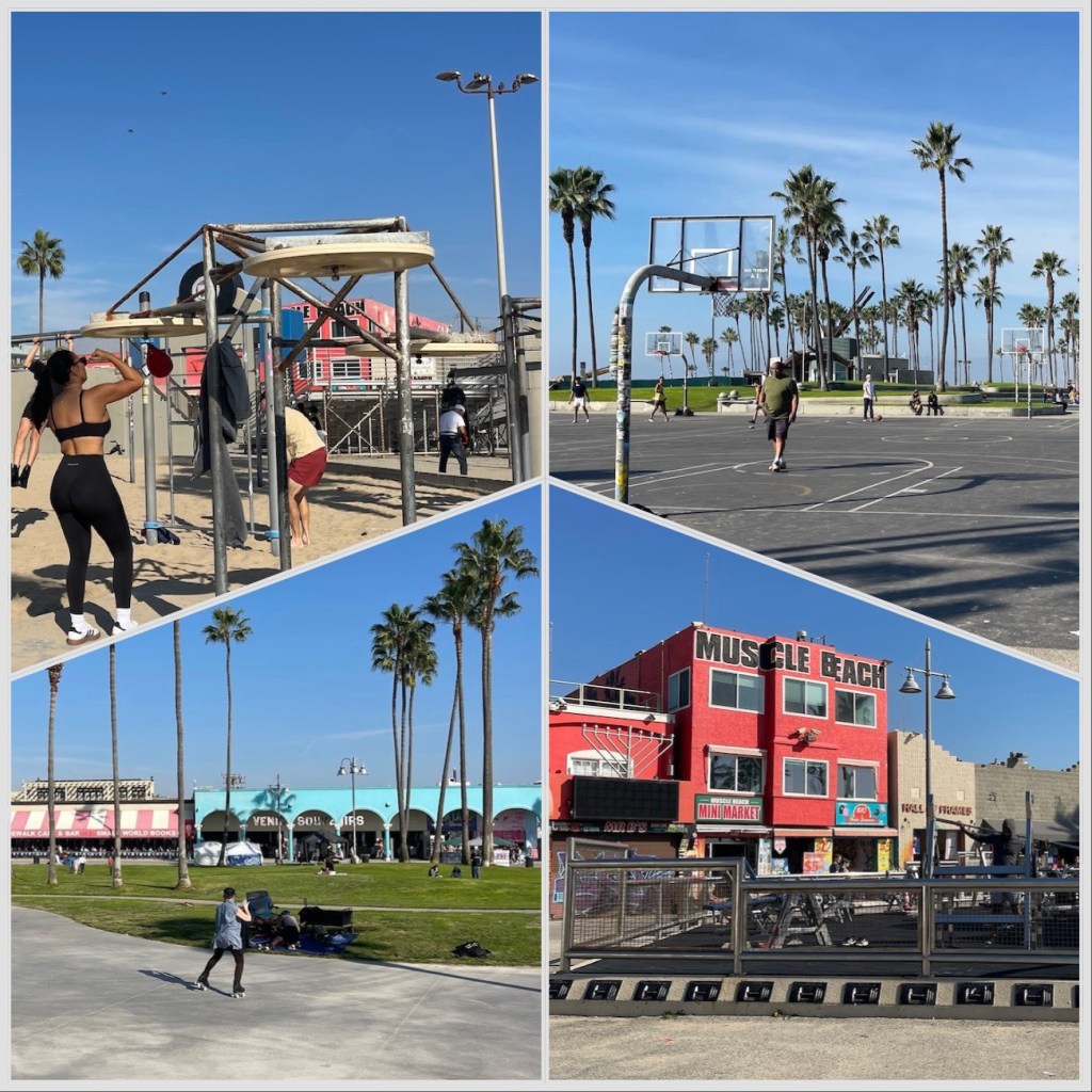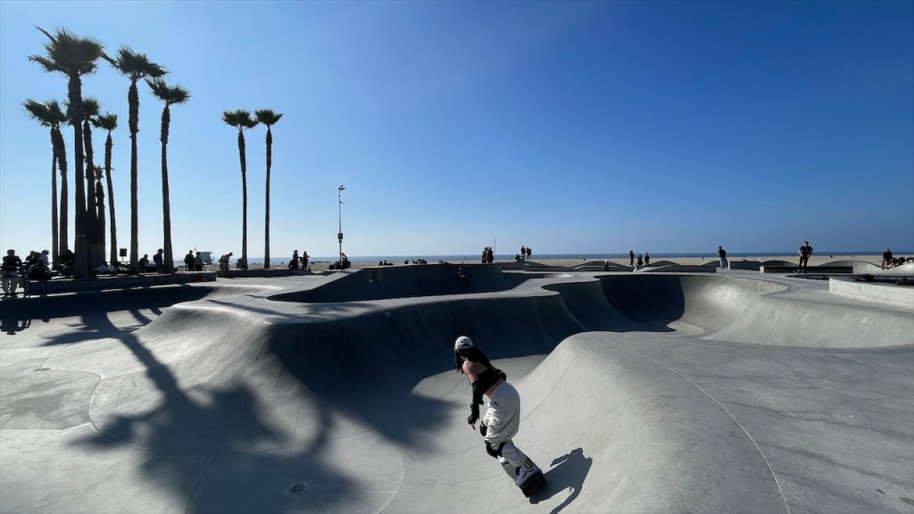 Tagsüber cruisten wir mit E-Scooter und Fahrrad den Oceanfront Walk entlang – vorbei an Muscle Beach, den Skateparks, Straßenkünstlern und all den typischen Venice-Vibes bis hin zum Santa Monica Pier, dem legendären Ende der Route 66.