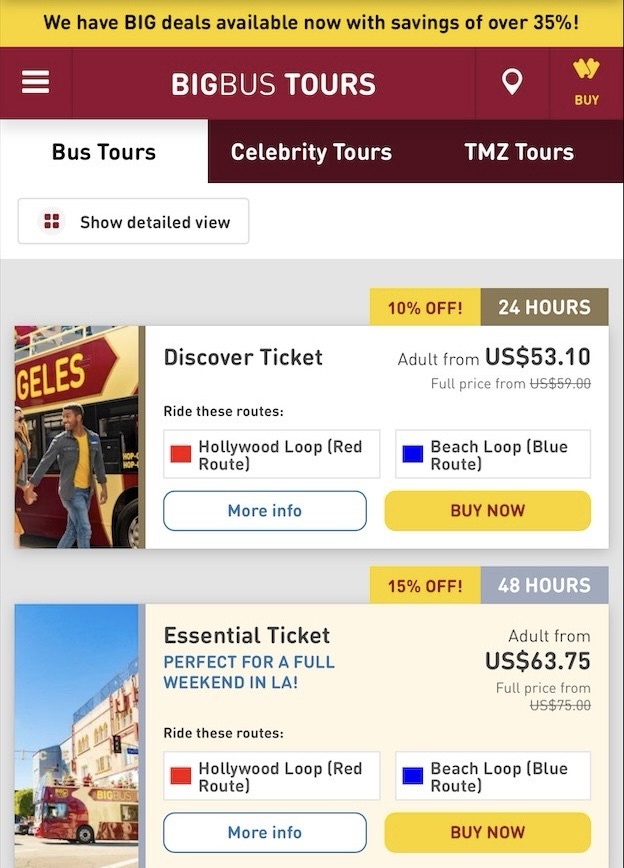 Die Tickets kaufte ich über Groupon, wo es immerhin 10 % Rabatt gab. Regulär kostet das 24-Stunden-Ticket bei BigBus 53 USD pro Person, das 48-Stunden-Ticket knapp 64 USD pro Person.