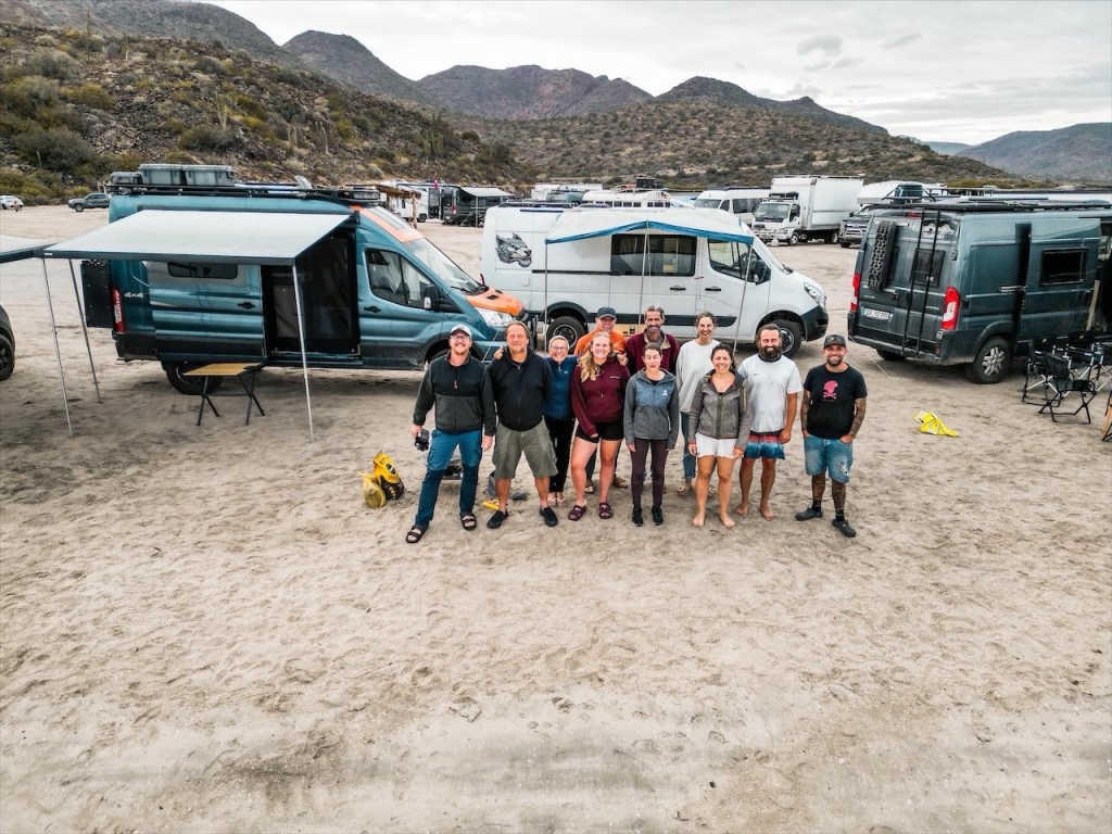 Tom & Caro, Karin & Claus, Stephan & Tanja, Ralph sowie obendrein Philipp & Regula aus der Schweiz (ebenfalls im Renault Master unterwegs, aber als 4×4 mit Zwillingsreifen).