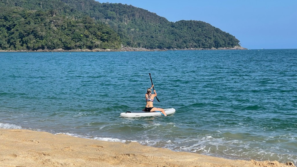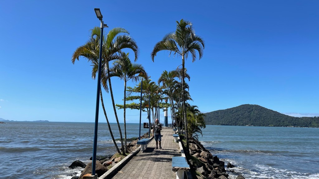 Wir konnten tatsächlich drei volle Tage und Nächte auf unserem schönen Stellplatz in Boicucanga, dem Vorort von Sao Sebastiao, verbringen und erstmals unser SUP von Paddelbrett ausprobieren. Das Stehen auf dem Board klappte bei mir auf Anhieb, nur das Wenden und Manövrieren will noch gelernt werden. 😎 Wir genossen die Auszeit am Strand sehr, zumal ja alle Annehmlichkeiten fußläufig erreichbar waren. Und in der Shopping Mall war sowohl am Freitag als auch am Samstagabend für kostenlose Unterhaltung in Form von richtig guter live Musik gesorgt. Bei den örtlichen Fischverkäufern investierten wir 15 € in ein Kilo Garnelen, welches uns für drei leckere Mahlzeiten reichte. 🍤