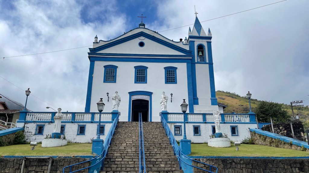 Gestern Abend trafen wir auf dem besagten Parkplatz in dem Örtchen „Toque Toque Pequeno“ noch Oliver, Inhaber der schönen Pousada (= Pension) „Aparas“. Oliver quatschte mich in perfektem Deutsch an weil er vermutete, dass ich zu dem geparkten Van gehöre. Richtig geraten. 😉 Es stellte sich schnell heraus, dass er als Sohn deutscher Auswanderer aus Detmold in NRW in Brasilien geboren wurde, aber immer mal wieder einige Jahre in Deutschland verbracht hatte. Seit zwanzig Jahren führt er nun mit seiner Frau Carla die hübsche Pension mit 19 Zimmern in direkter Strandlage, inklusive schöner Gartenanlage mit Pool und Massage- bzw. Saunahäuschen. Ein Zimmer inkl. Frühstück kostet dort unter der Woche 300 Real was in etwa 60 € entspricht. Nach dem er einige Schwenks aus seinem Leben bzw. von seinen Reisen zum Besten gegeben hatte, lud er uns noch für den nächsten Morgen zum Kaffee oder Frühstück in seine Unterkunft ein. Da es in der Nacht zu regnen begonnen hatte und es mitunter noch kräftig regnete als wir bereits aufgestanden waren, nahmen wir die Einladung gerne an und besuchten ihn und seinen Vater noch auf eine Tasse Kaffee inklusive kleinem Rundgang durch die Pousada. Als wir Oliver verließen hatte der Regen aufgehört und wir fuhren noch einige Kilometer bis Sao Sebastiao. Er hatte uns dazu geraten, weder die Ilha Bela noch Ubatuba oder Paraty zu Gunsten der Durchfahrt nach Rio de Janeiro links liegen zu lassen. Wir folgten seinem Tipp und parkten unseren Van in Sao Sebastiao ganz in der Nähe der Inselfähre bei der Parkanlage, bei welcher praktischer Weise auch die lokale Polizei stationiert war. So stand einer mega ruhigen und noch dazu super sicheren Nacht nichts im Wege. 😌 Gegen später gesellte sich auch noch ein Overlanderpaar aus Paris mit ihren zwei kleinen Kindern (1 und 4 Jahre alt) in ihrem 4×4 Sprinter Hymer Grand Canyon dazu.