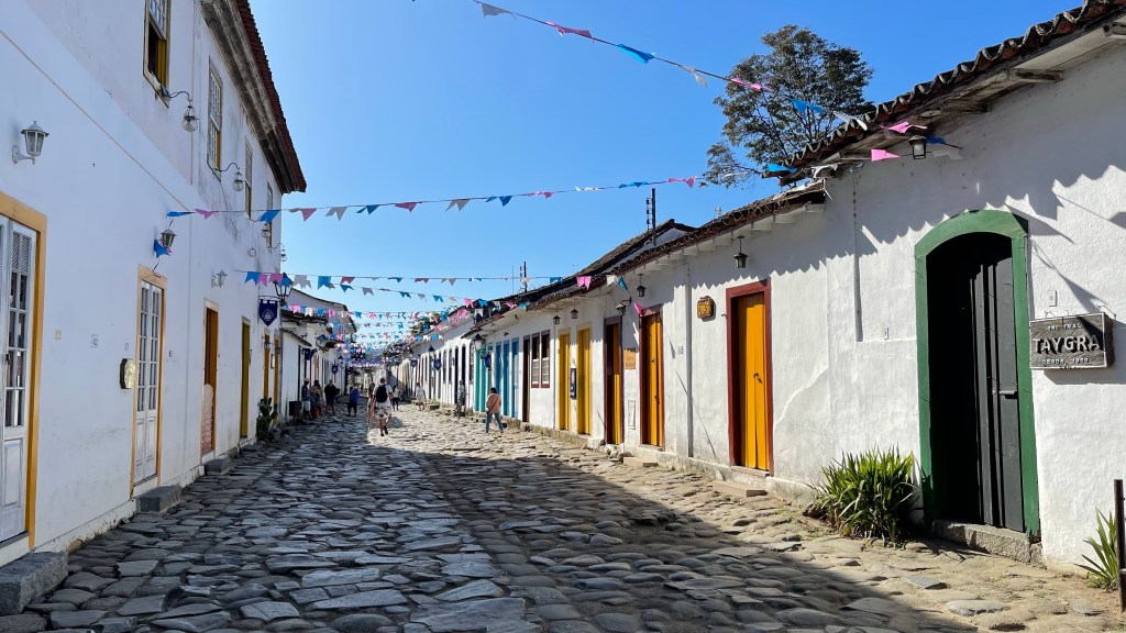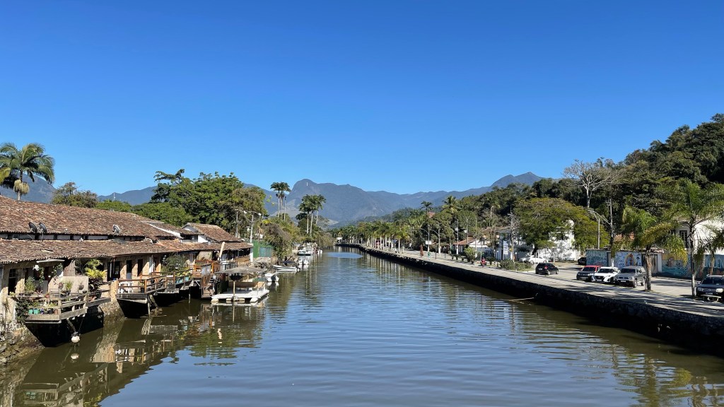 Wir genehmigten uns nach dem schönen Sonnenaufgang noch einen Kaffee und fuhren anschließend 20 km weiter nach Paraty. Glücklicherweise fanden wir direkt einen Parkplatz vor der örtlichen Polizei, unweit vom Zentrum. So brauchten wir erneut keine Fahrräder sondern konnten den historischen Altstadtkern mit seinem unregelmäßigen Kopfsteinpflaster gemütlich zu Fuß erkunden. Paraty liegt unweit von Ubatuba und so war die Kulisse hier ähnlich schön: Sandstrand, Meer, ein breiter Kanal bis in die Stadt hinein und das Ganze umrandet von tropisch grünen Bergen. 🏝🏖☀ Da wir heute so früh aufgestanden waren blieb noch genug Zeit und so entschieden wir uns, noch am selben Tag die verbleibenden 250 km bis Rio de Janeiro durchzufahren. Mehr dazu dann im nächsten Blog Beitrag. 😉
