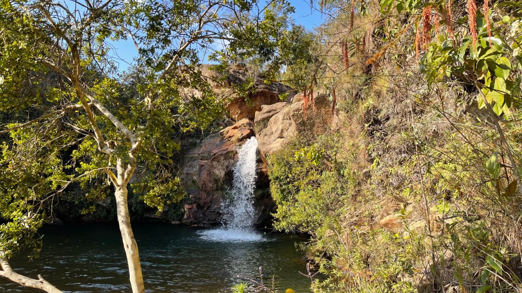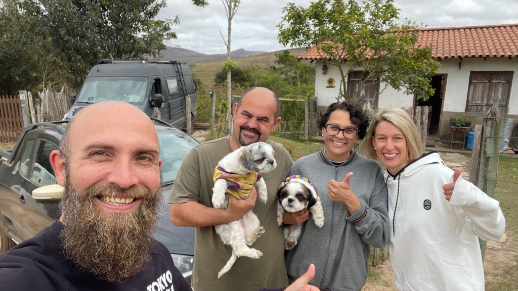 Relativ gut ausgeruht machten wir uns am nächsten Morgen auf in Richtung „Ouro Preto“. Auf dem Weg dorthin stoppten wir noch an einem gelben „BH Supermercado“ welcher endlich mal ein richtig gutes Preis-/Leistungsverhältnis aufwies. 👍 Am Nachmittag steuerten wir einen Stellplatz an welchen wir in der „iOverlander“ App gesehen hatten. Nach einigem Suchen fanden wir dann auch noch den besagten Platz: Es ging ein kurzes aber steiles Stück unbefestigten Weges von der Landstraße hinab bis zu einer ebenen Grasfläche. Dort parkten wir den Van und kraxelten den noch viel schmaleren und steileren Weg hinunter zu dem dort vermuteten Wasserfall. Wir waren wirklich überrascht von dem wunderschönen Idyll, dass wir unten angekommen vorfanden: Ein kleiner Wasserfall stürzte in einer schönen Kaskade vom Felsen in ein natürliches Becken. Von dort aus floss das Wasser ein Stück weiter den Fluss entlang, bis es sich über eine schmale natürliche Rutsche wieder in einen kleinen Wasserfall ergoss und dann den Fluss entlang weiter floss. Die Steine waren alle vom Wasser glatt geschliffen so dass wir vermuten, dass das Flüsschen in der Regenzeit zu einem reisenden Strom anschwillt. Nach der schönen Auszeit am Wasser begaben wir uns auf den steilen Rückweg zum Van und ruhten uns noch ein wenig in unseren Campingstühlen in der Sonne aus. ☀😎 Als es zu dämmern begann zogen wir uns in den Van zurück. Ich war gerade im Begriff das Abendessen vorzubereiten, als ein Pick Up den Weg zu uns hinunterfuhr. Ein Paar stieg aus und sprach uns an, ob wir hier übernachten wollten. Als wir dies bejahten meinten sie, dass es hier wohl nicht sicher sei, weil es in der Umgebung immer mal wieder zu Überfällen gekommen sei. Sie würden aber im Nachbarort 3 km weiter wohnen und wir könnten sehr gerne die Nacht bei ihnen auf dem Grundstück verbringen. Dieses Angebot nahmen wir natürlich dankend an. Wenn gleich auch mit einem mulmigen Gefühl, was uns dort wohl erwarten würde und ob das nicht auch eine Falle sein könnte?! Aber die beiden machten einen derart sympathischen Eindruck und als wir unsere liebe Not hatten, mit unserem schweren Van den Berg auf die befestigte Straße wieder hinaufzugelangen sahen wir sofort ein, dass sie mit ihrem gut gemeinten Ratschlag sicherlich richtig lagen. Wir folgten ihnen also bis zu ihrem Haus, ebenfalls abgelegen am Rand des 100 Einwohnerortes „Chapada“. Man parkte extra den VW T2 Bus um, damit wir an dessen Stelle direkt auf dem Parkplatz neben dem Haus parken konnten. Die beiden Besitzer, Dilse und ihr Mann, machen wieder kehrt um noch nach „Ouro Preto“ zu fahren um ihre Einkäufe zu erledigen. Sie waren sogar extra wegen uns noch einmal umgekehrt! Als sie zurückkamen, hatten wir bereits unser Abendessen vertilgt. Freundlicherweise luden uns die beiden just in dem Moment auch noch auf ein gemeinsames Frühstück in ihr Haus am kommenden Morgen ein. Am Folgetag, so erfuhren wir, war in Brasilien nämlich „Unabhängigkeitstag“ und somit Feiertag weswegen die beiden freit hatten. 🥰🥰🥰