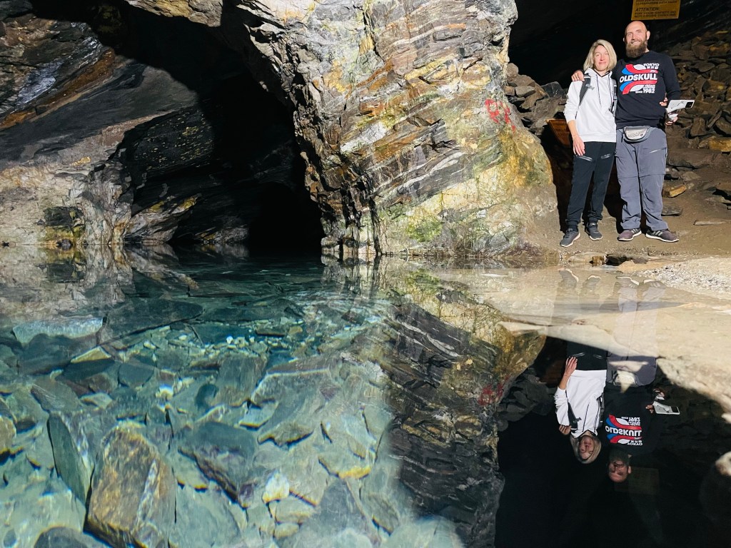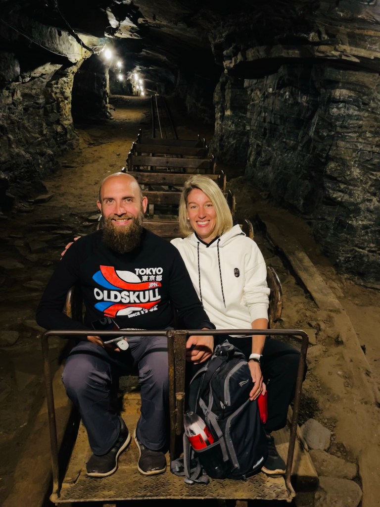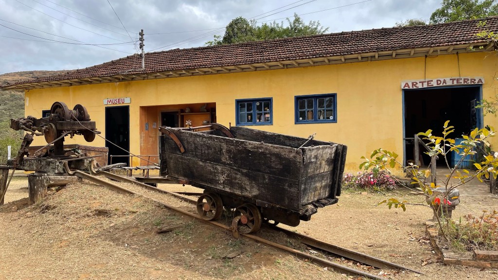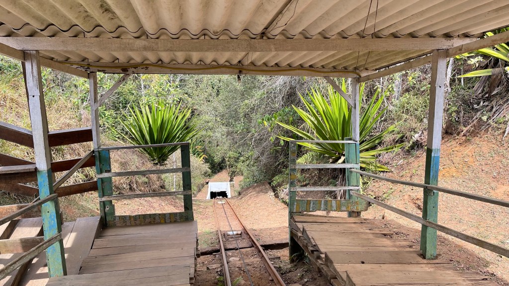 Kurz vor Mariana besichtigten wir noch die alte, ehemalige Goldmine „Mina da Passagem“. Mit der Lohre ging es steil am Seil hinab in den Bergbau schaut. Wir fuhren mit unserer, leider nur portugiesisch sprechenden Führerin, bis auf die dritte Ebene in 130 Meter Tiefe hinab. Sie gab sich wirklich viel Mühe und sprach sehr langsam so dass wir doch einiges verstehen konnten. Pro 30 Meter Tiefe steigt die Temperatur wohl um 1 Grad an was deutlich spürbar war. Unten angekommen war es tatsächlich feucht warm und die extra eingepackte Jacke hätten wir getrost im Auto lassen können. In den 100 Jahren Minenbetrieb wurden unglaubliche 35 Tonnen Gold gefördert. Außerdem wurde auch Silber, Marmor, Granit und Eisenerz abgebaut. Sowohl die 5 Kilometer bis „Ouro Preto“ in die eine, als auch die 2 Kilometer bis „Mariana“ in die andere Richtung sind komplett untertunnelt. 😮 Das Gestein enthält u.a. aber auch giftiges Arsen, welches insbesondere nach Regenfällen herausgelöst werden kann und beim Menschen zu Vergiftungen bzw. Verätzungen der Haut führen kann. Das Wasser des oberhalb der Mine verlaufenden Flusses sickert ganz langsam, aber stetig in die Tiefe. Und das Grundwasser von unten bildet einen kleinen, aber lebensfeindlichen, weil sauerstoffarmen See welchen wir ebenfalls sehen konnten. Taucher haben sogar die Möglichkeit, in den Höhlen unter Wasser zu tauchen. Wir blieben auf der dritten von insgesamt sechs Ebenen und sahen, außer dem Schrein mit der Schutzpatronin der Bergleute „Santa Barbara“ nichts anderes mehr. So ging es mit der Lohre nach ca. 20-30 Minuten wieder zurück ans Tageslicht. Die Führung war zwar interessant aber insgesamt 52 € für uns beide waren dafür wiederum dann doch recht viel.