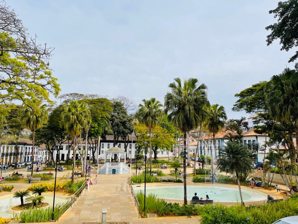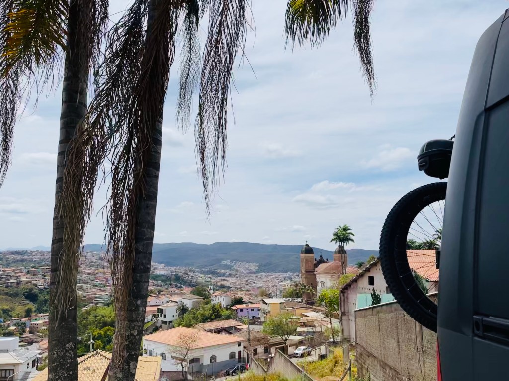 Um die Mittagszeit trafen wir dann im wenige Kilometer entfernt liegenden „Mariana“ ein. Wir parkten unseren Van am Krankenhaus, welches oben am Hang lag und eine herrliche Aussicht auf die Stadt bot. Laut Dilses Mann wäre es auch absolut sicher hier zu übernachten also suchten wir direkt einen guten Parkplatz aus. 😉 Von hier aus konnten wir zu Fuß in die nahegelegene, mit Kopfstein gepflasterte Altstadt hinabsteigen. Es gab zahlreiche Kirchen sowie einen hübschen Platz im Ortskern mit Springbrunnen und Grünfläche. Auf Grund des Feiertages hatten aber die meisten Geschäfte und Lokale geschlossen und so gab es weiter nicht viel zu sehen. Wir begaben uns wieder zurück zu unserem schön gelegenen Parkplatz und genossen von dort aus noch die herrliche Aussicht auf die Stadt. 😍