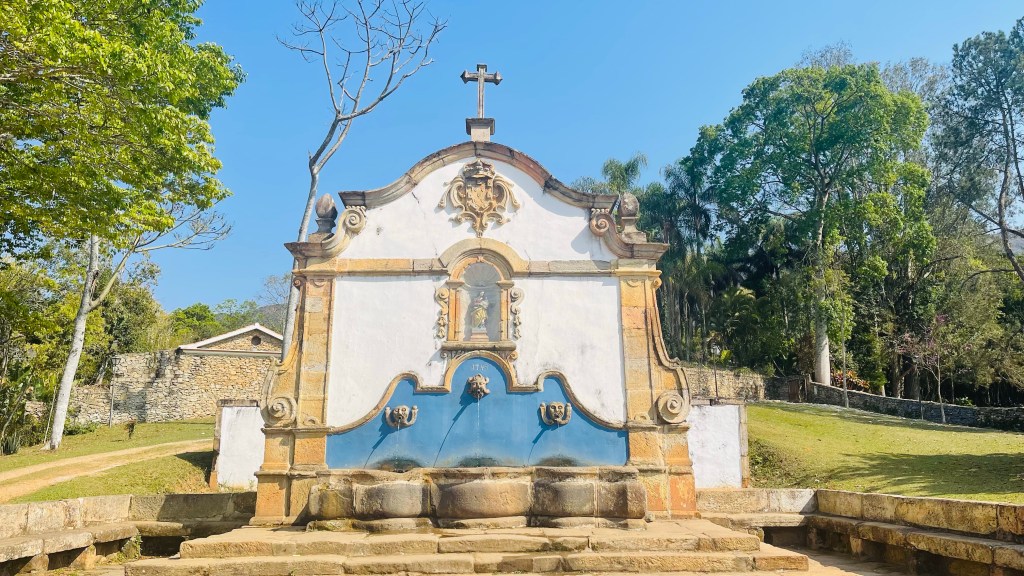 Bis ins Zentrum von „Tiradentes“ waren es am nächsten Morgen nur einige hundert Meter. Da wir nach dem gestrigen, üppigen Mittagsbüffet erneut dinner cancelling betrieben hatten gab es ausnahmsweise schon direkt nach dem Aufstehen Frühstück. 😂 Danach parkten wir unseren Van ganz zentral am Busbahnhof von wo aus wir die kleine, überschaubare Altstadt sehr gut zu Fuß erkunden konnten. Unser Weg führte uns zuerst zu dem großen Brunnen aus dem Jahr 1749. Er enthält insgesamt drei Becken welche alle einem anderen Zweck dienten: Eines war für Trinkwasser bestimmt, eines um die Pferde zu tränken und eines um die Wäsche zu waschen. Lustigerweise traf tatsächlich bei unserem Gehen eine Horde Grundschulkinder mit ihrer Lehrerin an dem Brunnen ein. Die Kinder füllten dort zu unserer Verwunderung tatsächlich alle ihre Trinkflaschen auf. 😮 Wir folgten dem Tipp aus dem Reiseführer und gingen durch eine niedrige Holztür in dem Mauerwerk unweit des Brunnens. Von dort aus führte ein schmaler Pfad durch dichten Urwald immer entlang des Wassergrabens, welcher den Brunnen speist, bis zur Quelle. Der Spaziergang dauerte nicht lange, vielleicht 10 Minuten Fußweg, war aber wirklich sehr malerisch und unter den Bäumen war es auch noch angenehm schattig kühl. Danach schauten wir uns in dem äußerst hübschen, kleinen Städtchen um. Wie immer gab es schöne Kirchen und in einer fand kurz darauf sogar eine Trauung statt. Die Kopfsteinpflastergassen und die bunten Fenster- und Türrahmen kannten wir ja schon aus anderen von uns besuchten Städten. Hier kamen aber noch ziemlich viele Pferdekutschen und vor allem wirklich sehr, sehr schöne Kunsthandwerksläden hinzu. Es gab allerlei hübsche Keramik, nette Galerien und kleine Cafés sowie Restaurants. In einem der Cafés konnten wir sogar die „Cafés do Brasil“ Kaffeesäcke entdecken, welche wir u.a. bei Ettli Kaffee in Ettlingen erstanden und in unserem Bus verbaut haben. 😍 Wir stolperten zufällig auch noch über eine gute und stabile WLAN-Verbindung und konnten so auch noch mit den Lieben zu Hause telefonieren. Immer wieder schön. 💕 Nach der Stippvisite ging es dann zurück auf die eher schlechte Autobahn. Wir quälten uns darauf rund 100 km, für die man dann schon gut und gerne zwei Stunden braucht, hinter den langsam fahrenden, weil schwer beladenen LKWs her. Außerdem führt solch eine Autobahn auch gerne mal durch größere und kleinere Orte. Durch diese kann man max. 30 oder 40 km/h schnell fahren. Zumal man alle paar Meter durch die nervigen Bodenwellen ausgebremst wird. Wir gelangten dann aber doch noch weiter auf die gute Autobahn und konnten noch einmal ein wenig Strecke machen. Als nächstes wollen wir Simons Großonkel Jürgen, welchen wir glücklicherweise über Facebook ausfindig machen konnten, besuchen. An diesem Tag übernachteten wir daher mal wieder an einem Autobahn-Posto, um von dort aus die restlichen ca. 300 km zu überwinden.