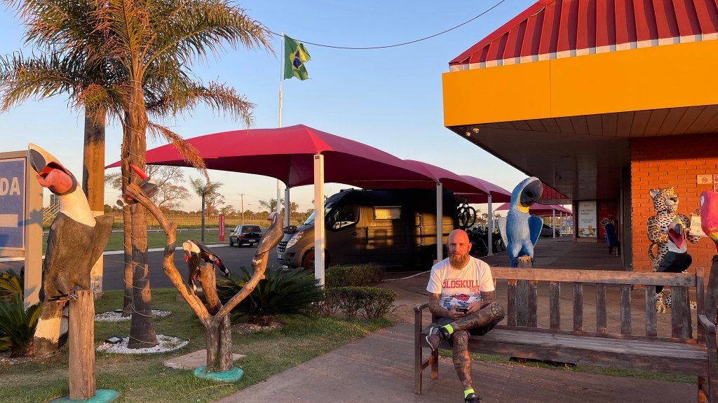 Eigentlich wollten wir am Samstag nur ein ganz kurzes Stück von unserem Übernachtungs-Posto bis zum „Rio Paraná“ fahren. Der Fluss ist an der Stelle, an der wir ihn so oder so hätten passieren müssen, ziemlich breit und mutet daher eher wie ein See an. Ich hatte gehofft, dass wir uns dort im Park entlang der Küste nach den zurückliegenden Fahrtagen endlich mal wieder etwas die Beine vertreten und vielleicht sogar eine Nacht am Wasser stehen können. Aber, um an dieser Stelle die Onkelz zu zitieren: „Erstens kommt es anders und zweitens als man denkt“. Wir fuhren am letzten Posto vorbei bevor die Brücke den „Rio Paraná“ überquert und ich schaute wohl eine Sekunde zu lange hin ganz in Gedanken, ob das wohl ein passender Ort für die Nacht sein könnte. So verpassten wir leider die direkt dahinter liegende Ausfahrt ans Ufer und befanden uns, schneller als wir schauen konnten, schon auf der rund 12 km langen Brücke. Natürlich ohne Wendemöglichkeit. 🙈🙉🙊 Simon wollte nicht umkehren um Kilometer zu sparen (wobei es am Ende unserer Reise auf die paar mehr sicherlich nicht angekommen wäre) und so fuhren wir ohne den geplanten Stopp schnurstracks weiter. 🤷♀️ Dafür wurden wir auf der anderen Seite des Flusses, jetzt im Bundesstaat „Matto Grosso do Sul“ und nicht mehr „Sao Paulo“, direkt von drei großen und wunderschönen blauen Aras empfangen. 🤩 Der Blick auf die Uhr brachte dann die nächste Irritation mit sich. Auf meinem Handy und meiner Smart-Watch stand 11:37 Uhr, alle anderen Uhren im Van zeigten 12:37 Uhr. Der nächste Halt an der Raststätte bestätigte dann unsere Vermutung: Durch den Wechsel des Bundesstaates befinden wir uns nun in einer anderen Zeitzone und haben ab sofort nicht mehr 5 sondern 6 Stunden Zeitverschiebung zu Deutschland. Weiter ging die Fahrt durch grünes Grasland und zu unserer Begeisterung konnten wir während dieser insgesamt 4 „Große Ameisenbären“ erspähen! Die Tiere standen friedlich etwas abseits der Straße und waren ganz offensichtlich auf der Suche nach ihrer Leibspeise: Den Termiten. Zumindest waren die rostroten Hügel unschwer als solche zu erkennen. Laut einer deutschen Zoologin, die mehrere Monate pro Jahr im „Pantanal“ verbringt um die Tiere zu studieren, sind diese „nicht die hellsten Kerzen auf der Torte“ ameisenbaeren-im-pantanal. 🤣 Das liegt wohl an dem nur Walnuss großen Gehirn der Ameisenbären und die meiste Kapazität benötigen sie wohl für ihren guten Geruchssinn. Anscheinend sehen und hören die Armen wohl auch nicht so gut. Die ausgewachsenen Tiere waren in etwa so groß wie ein größerer Hund (beste Grüße an „Rocky“ an dieser Stelle!), wirken aber durch den langen buschigen Schwanz und den Rüssel noch deutlich größer. Des Weiteren sahen wir zahlreiche Emus auf den Wiesen und Weiden. Ebenso einige größere Raubvögel und auch die kleinen, lauten grünen Papageien waren mal wieder zu sehen. 😍 Entlang der Strecke lagen viele verstreute „Fazendas“ (= Ranches) mit jeweils unglaublich großen Ländereien rundum. Entsprechend viele Rinder gab es auf den Weiden zu sehen und nur noch wenige Zuckerrohr-Felder im Vergleich zum Vortag. Tja und anstatt der rund 150-200 km pro Tag, die wir uns eigentlich als Ziel gesetzt hatten, fuhren wir dann letztlich knapp 400 km bis wir zu einem geeigneten Posto für die Nacht kamen. 🤔 Der Großteil des Weges ging heute entlang einer vom Land Brasilien finanzierten, öffentlichen Autobahn. Dies merkt man stets daran, dass die Straße eher einer unserer Bundesstraßen ähnelt. Sie ist oft nur einspurig mit Überholspuren im Seitenwechsel, es gibt öfter mal das ein oder andere Schlagloch aber dafür ist sie kostenfrei. Und hinter den zahlreichen LKWs, welche hier oft mit einer Länge von bis zu 30 Metern unterwegs sind, kann man sowieso nicht schneller als 90 km/h schnell fahren.