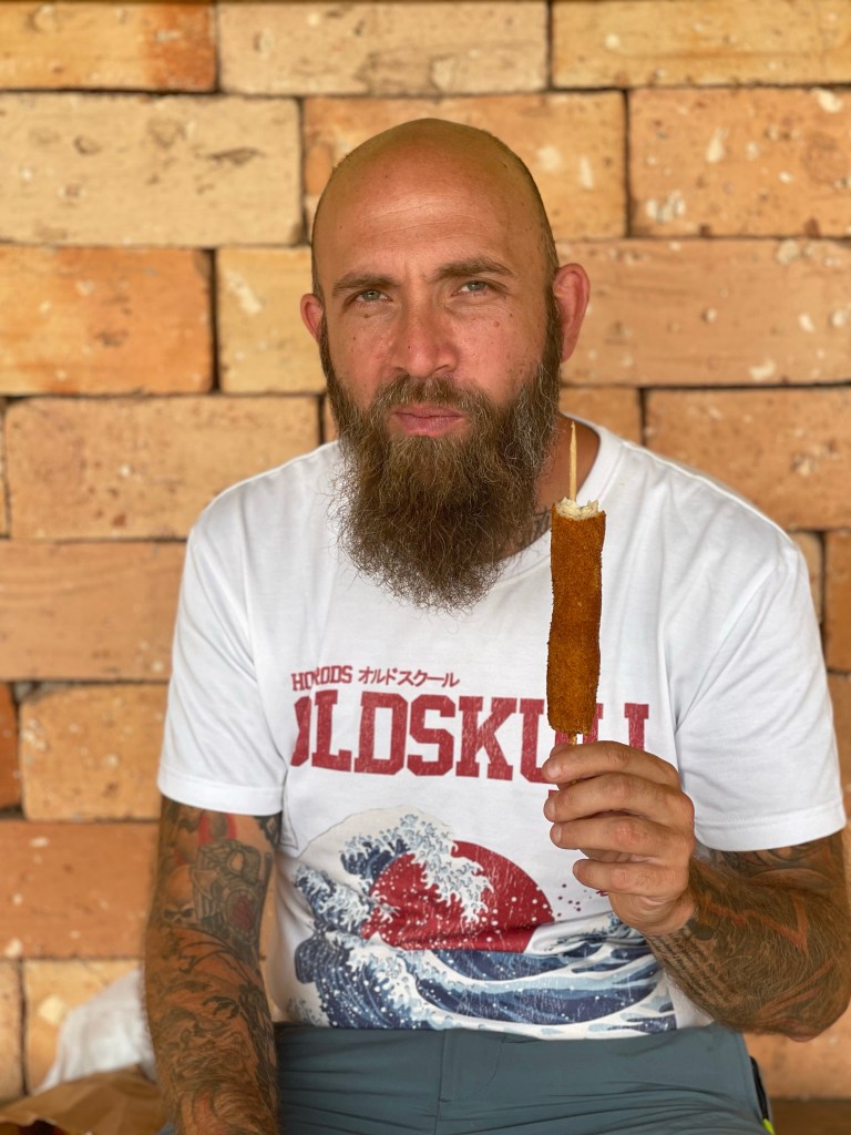 So sah dann auch der Freitag aus: Wir schliefen aus und ich hatte tatsächlich das erste Mal während unserer Reise die Gelegenheit für eine Runde Yoga am Morgen. 🧘♀️ Zwar am Grünstreifen zwischen Autobahn und Raststätte, aber immerhin beim Koi-Karpfen Teich! 😅 Es tat auf jeden Fall gut und trug vielleicht auch zum guten Gelingen des Schoko-Kuchens bei, welchen ich noch vor dem Frühstück in unseren „Omnia“ Camping-Backofen beförderte. Gegen Mittag brachen wir auf und machten uns auf den Weg zu einem größeren Supermarkt in der Nähe der Autobahn. Dort füllten wir unsere Vorräte auf und wir kamen noch ziemlich entspannt gute 200 km weit. Diese Autobahnstrecke ist wirklich sehr malerisch und angenehm zu fahren: Immer kerzengeradeaus, über leichte Hügel auf und ab entlang von saftig grünen Wiesen und Zuckerrohrfeldern sowie den dazugehörigen Fabriken. Lediglich die Mautstellen dürften für unseren Geschmack etwas seltener auftauchen aber dafür kommen wir immerhin zügig voran.