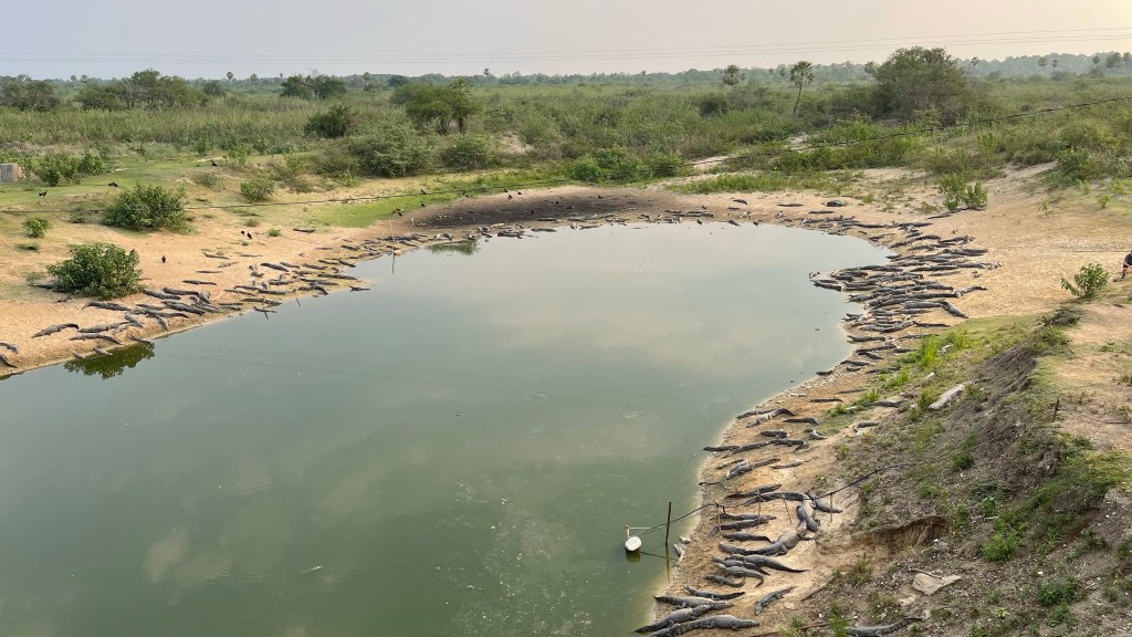 In „Miranda“ stoppten wir noch an einem Supermarkt, um noch einmal Trinkwasser zu kaufen. Auf dem Weg überquerten wir eine Brücke, von welcher man in ein Wasserloch mit mehreren hundert Alligatoren hinunterblicken konnte. 🐊😮 Wir vermuten, dass sich die Tiere hier zu Ende der Trockenzeit versammeln, weil die meisten anderen Wasserquellen in den Sümpfen bereits ausgetrocknet sind.