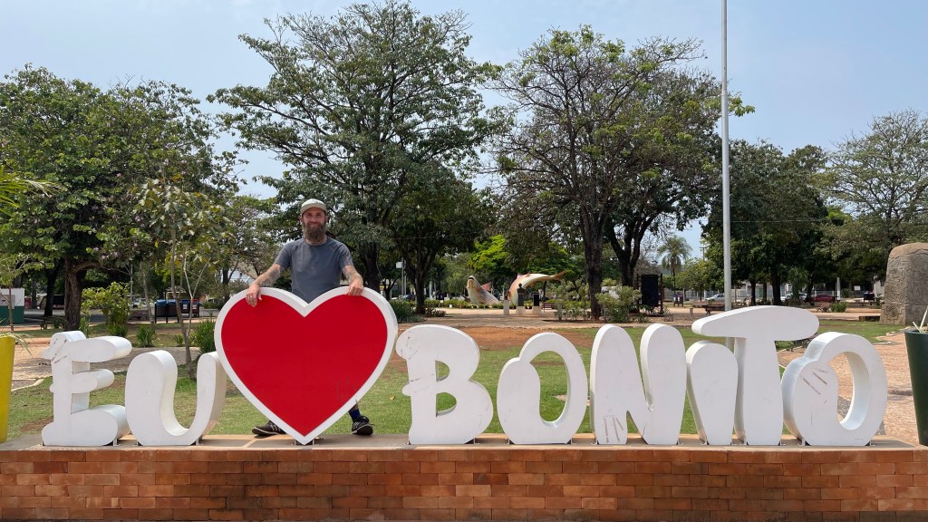 Am Samstagmorgen nach einem schnellen, aber dringend nötigen „Hausputz“ und einem stärkenden Frühstück (es gab Rührei mit leckerem Vollkorn-Toast) nahmen wir erneut die Fahrräder vom Auto. Laut Wetterbericht sollte es trocken bleiben, bei einem Sonne-Wolken Mix und max. 28 Grad. Wir hatten uns vorgenommen, den Erdweg in die andere Richtung stadtauswärts zu nehmen bis zur „Nascente do Sucuri“. Hier hatten wir für kommenden Montag die Schnorchel-Tour gebucht und da weder Samstag noch Sonntag dort Ausflüge stattfanden hatten wir die Hoffnung, dort eventuell schon von Sonntag auf Montag übernachten zu können. Bis dahin galt es rund 20 km „Buckelpiste“ zu bewältigen. Von der Mittagshitze einmal abgesehen fuhr es sich mit unseren günstigen „Rockrider“ Mountainbikes wieder erstaunlich gut. 👍 An unserem Ziel angekommen schauten wir uns um und fanden, wie vermutet, tatsächlich keine Menschenseele vor. Der große Parkplatz schien uns für eine Übernachtung gut geeignet und so machten wir uns wieder auf den Rückweg. Nach etwa 5 km hielten wir an der „Barra do Sucuri“. Von dort aus wurden ebenfalls, wenn auch etwas kürzere, Schnorchel-Trips auf dem „Rio Sucuri“ angeboten. Wir wollten dort nachfragen ob es eventuell möglich wäre, am Sonntag dort einfach nur im Fluss zu baden und auf den Grünflächen bzw. im Pool zu relaxen. Auf dem Parkplatz angekommen entdeckten wir dort zu unserer großen Freude den Jeep Wrangler von Ju & Lydia alias „a donde voy“ bei YouTube und Instagram. Mit den beiden hatten wir uns ja den Verschiffungscontainer geteilt. Wir erkundigten uns an der Rezeption nach der Tagesnutzungs-Möglichkeit, welche für 65 Real zu unserer Freude wohl gegeben wäre. Freundlicherweise ließ man uns auch auf das Gelände und wir konnten uns in Ruhe dort umschauen. Sowohl der Pool als auch das kristallklare Flusswasser, in welches man von mehreren Plattformen aus hätte einsteigen können, sah sehr verlockend aus. Unsere beiden Container-Buddys konnten wir allerdings nirgends entdecken. Wahrscheinlich waren sie gerade schnorcheln… Beim Gehen erkundigten wir uns nach den Öffnungszeiten für den Folgetag und mussten zu unserer großen Enttäuschung erfahren, dass am Sonntag auf Grund der Präsidentschaftswahlen leider geschlossen wäre. Satz mit X das war wohl nix. 😕 Wir schossen noch ein Beweis-Foto von Ju & Lydias Reisemobil und machten uns mit unseren Fahrrädern auf den Rückweg in die Stadt. Wenige Kilometer weiter befand sich noch ein öffentliches Bad. Also bogen wir erneut von der Straße zum „Praia do Figeira“ ab und fragten dort noch, ob dieses denn am Sonntag geöffnet wäre. Unsere Frage wurde bejaht und so entschieden wir wohl oder übel mangels Alternativen, im Touri-Office in der Stadt zwei Tickets für den Folgetag zu erwerben. Eigentlich hatten wir entschieden, in keines der angelegten Bäder zu gehen aber bei über 30 Grad stand uns der Sinn definitiv nach baden. Wieder in „Bonito“ angekommen, stoppten wir erst einmal am Supermarkt und gönnten uns eine eiskalte Sprite und je ein Stück erfrischende Wassermelone. Bis wir wieder am Van angelangt waren, hatten wir tatsächlich fast 45 km bewältigt. 🥵 Dort angekommen gönnten wir uns also erst einmal eine wohl verdiente Verschnaufpause auf dem schattigen Rasen, bevor wir ins nahegelegene Touri-Office trabten. Dort kauften wir sowohl die Tickets für das Badeparadies am Sonntag als auch gleich die Eintrittskarten für das „Buraco das Araras“ am Dienstagmorgen. Vom dortigen WLAN aus schickten wir noch das Beweisfoto und eine Sprachnachricht an unsere Container-Buddys. Wir schafften es an diesem Abend zeitlich leider nicht mehr auf ihren Camping-Platz und die beiden wollten am Sonntag zeitig aufbrechen. Aber ganz bestimmt werden wir uns an anderer Stelle wieder irgendwo begegnen. 😅 Simon probierte noch unsere Außencampingdusche aus und ich spülte mir Schweiß und Sonnencreme gegenüber an der Tankstellendusche ab. Nach dem Abendessen, wir hatten zum Glück noch Reste vom Vortag, spazierten wir dann noch in die Stadt hinein. Es war schön, den Einheimischen am Samstagabend im Park beim Bier trinken, Musik hören und Unterhalten zuzuschauen. Zur Belohnung für den sportlichen Tag gab es für jeden noch ein leckeres Eis bevor wir dann müde und zufrieden ins Bett fielen.