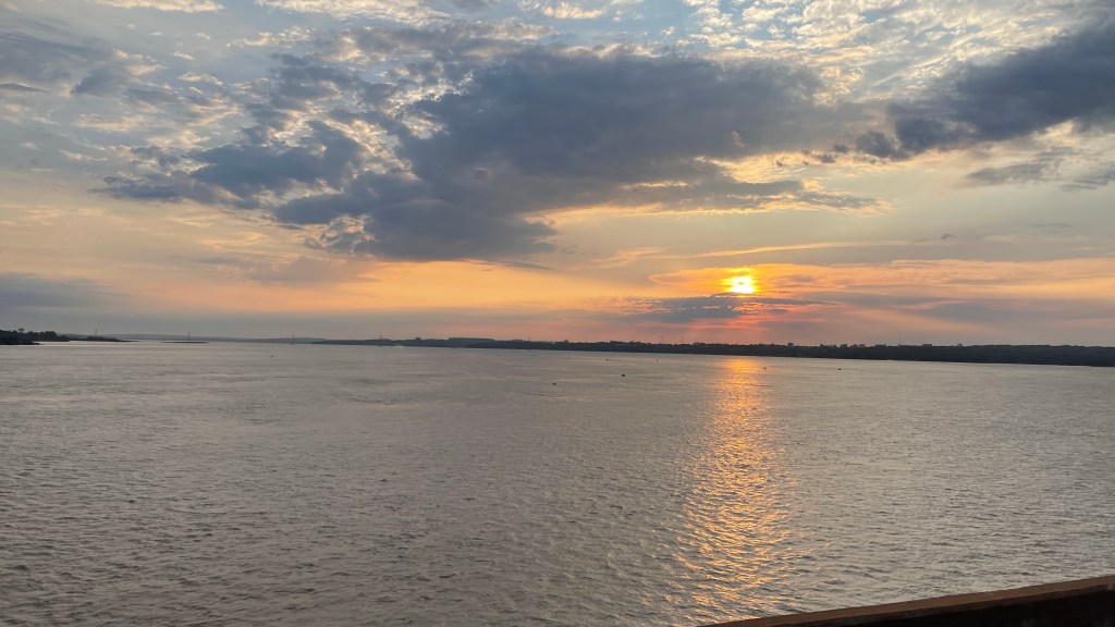 Am Mittwoch regnete es fast den ganzen Tag über mal mehr oder weniger heftig. Der ideale Tag also, um wieder Strecke in Richtung „Foz do Iguazu“ zu machen. 😉 Gegen Mittag unterbrachen wir die Fahrt an einer Raststätte um von dort aus noch etwas an den Laptops zu arbeiten. Am späten Nachmittag, als der Regen aufhörte, entschieden wir dann doch noch ein paar Kilometer in Richtung unseres nächsten großen Ziels zu fahren. Wir überquerten den viele Kilometer breiten „Rio Paraná“ welcher als Seitenarm letztlich die „Iguazu Wasserfälle“ bildet. Mit überqueren der langen Brücke wechselten wir auch erneut den Bundesstaat. Es ging von „Mato Grosso do Sul“ nach „Paraná“ und urplötzlich sprangen die Uhren wieder eine Stunde weiter nach vorne. 🙈 Als es zu dämmern begann steuerten wir einen größeren Autobahn-Rasthof an und was sprang uns dort sofort ins Auge?! Der helle Jeep von Lydia & Ju, unseren Container-Buddys. Wir trafen die beiden bei einem Bierchen im Restaurant an und gesellten uns noch für ein kurzes Schwätzchen dazu, bevor wir uns in unseren Bus trollten um uns unserer leckeren Pfannen-Pizza zu widmen. 🍕 In dieser Nacht schliefen wir auf Grund des Sturms und der mitunter heftigen Regenfälle sowie dem Lärm der LKWs eher schlecht.