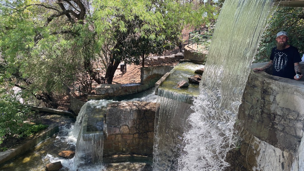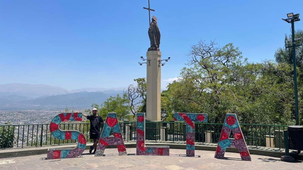 Am Sonntagmorgen verließen wir ein wenig wehmütig nach drei ruhigen Nächten und zwei entspannten Tagen unseren herrlichen Stellplatz am See „Campo Alegre“ um ins ca. 30 km entfernte „Salta“ zu fahren. Entlang der Wegstrecke befanden sich noch ein bis zwei weitere schöne Campingplätze, mitunter sogar an einem kleinen Flusslauf. Auch die Häuser in den kleinen Dörfchen waren alle schön hergerichtet und die Gegend mutete insgesamt nach Wochenendausflugsziel an. Nach ca. einer halben Stunde Fahrt kamen wir in der 500k Einwohnerstadt „Salta“ an. Wir schauten uns direkt zwei verschiedene Stellplätze an welche wir eventuell für die Nacht in Betracht zogen und parkten unseren Van dann auf einem der beiden direkt vor dem „Monumento a Güemes“. An diesem Tag war es erneut wahnsinnig heiß, wie uns die Wetter-App (leider erst im Nachhinein) mitteilte bis zu 37°C im Schatten. 🥵 Dennoch entschieden wir uns sportlich zu betätigen und statt der Seilbahn, welche ab dem „Parque San Martin“ auf den „Cerro San Bernardo“ hinaufführt, die 1.070 Stufen bis zum Gipfel zu erklimmen. Der Pfad führte direkt hinter dem Denkmal steil nach oben und bot leider nicht den geringsten Schatten so dass wir wirklich schweißgebadet oben ankamen. Wie gerne wären wir in diesem Moment unter die dort angelegten Wasserkaskaden gestanden! 😭 Im Schatten der dortigen Bäume war es zum Glück halbwegs erträglich und so konnten wir die Aussicht hinunter auf die Stadt sowie den Rundweg um die Wasserfälle dann doch genießen. Eventuell käme auch hier oben ein Übernachtungsspot in Frage und wir könnten uns abends bei Dunkelheit dort noch ein wenig Wasser im Eimer für unsere Außendusche abzwacken! 😛 Wir füllten an den Trinkwasserspendern noch einmal unsere Flasche auf bevor wir uns an den deutlich leichteren und schnelleren Abstieg machten. Zwischenzeitlich war es später Mittag und unsere Mägen knurrten nach dem heute doch recht zeitigen Frühstück so dass wir direkt weiter zu der nahegelegenen Mall liefen. Lediglich die Laptops packten wir noch in den Rucksack in der Hoffnung, dort nach den vergangenen Tagen ohne Internet eventuell vernünftiges WLAN zu finden. Schließlich wollten zwei fertige YouTube Videos, ein Blog-Beitrag und diverse Instagram Posts viral gehen. In dem schicken Shopping-Center angelangt drehten wir erst einmal eine Runde und bestaunten die hübsch hergerichteten Schaufenster der Boutiquen und verschafften uns einen Überblick über die doch recht große Food-Meile. Letztlich entschieden wir uns dann aber doch für „das Gasthaus zum Goldene M“ und für schlappe 2,30 € bekam jeder von uns einen Doppel-Cheeseburger inkl. kleiner Pommes und kleinem Getränk. Und was soll ich sagen: Wenn man richtig Hunger hat so wie wir in diesem Moment schmeckt es tatsächlich richtig gut. 😂 Nur das WLAN war weit weniger gut als erhofft und wir mussten unsere Laptops unverrichteter Dinge wieder zusammenklappen. Wir schnappten uns noch ein kleines Eis auf die Hand und kauften im dort ebenfalls befindlichen „Carrefour“ noch ein paar Kleinigkeiten fürs Abendessen ein. Als wir die Mall geschätzte 2 Stunden später wieder verließen fiel mir sofort der seltsam verschleierte Himmel und der beißende Geruch von Rauch auf. Zudem wehte ein mitunter sehr kräftiger, böiger Wind der den Schmutz auf den Gehwegen durch die Luft wirbelte. Während wir zurück zum Auto liefen entdeckten wir dann auch die Ursache: Ein Teil des bewaldeten Berges, auf dem wir zuvor noch waren und evtl. überlegt hatten dort zu übernachten, stand in Flammen. 😲 Wie gut, dass unser Auto nicht oben, sondern am Fuße des Berges parkte und wir es somit wohlbehalten dort vorfanden. Aber diesen Übernachtungsspot konnten wir definitiv von der Liste streichen… Nach dem wir die Einkäufe verstaut hatten parkten wir notgedrungen um und stellten unseren Bus auf einem Supermarktparkplatz direkt im Zentrum ab. Direkt gegenüber fanden wir ein nettes Café mit exzellentem, preiswertem Kaffee und, viel wichtiger, super schnellem WLAN. So konnten wir an diesem Tag doch noch alle to do´s abarbeiten. 🤩 Ruckzuck war es 19 Uhr und bis wir mit der Erkundung des Supermarktes (bei dem wir parkten) fertig waren, war es auch schon dunkel. Wir trafen dort noch ein deutsches Backpacker-Paar aus Münster mit welchem wir einen kurzen Plausch hielten bevor wir zurück zum Denkmal fuhren wo wir bereits zuvor standen. Dort waren noch ziemlich viele Polizisten präsent welche den Weg nach oben zum, mittlerweile zum Glück nicht mehr brennenden, Hügel absperrten. Wir erkundigten uns, ob wir hier bzw. auf dem Parkplatz bei dem direkt danebengelegenen Museum übernachten könnten und sie gaben ohne mit der Wimper zu zucken ihr Einverständnis. Der Parkplatz war zwar nicht ganz eben so dass wir in unserem Bett eine leichte Schieflage hatten aber keiner von uns ist herausgepurzelt und im Großen und Ganzen hatten wir dort eine gute sowie ruhige Nacht. 🌙