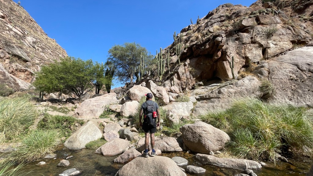 Nach einer ruhigen Nacht machten wir uns morgens, als die Sonne noch nicht so hoch am Himmel stand, auf den Rückweg nach „Cafayate“. Simon wollte noch gerne mit der Drohne über Canyon und Fluss fliegen so dass wir an einem der Aussichtspunkte dafür stoppten. Während ich uns Kaffee kochte ließ Simon die Drohne starten und prallte leider im Rückwärtsflug gegen einen der Berge. 😫 Drei der vier Rotorblätter gingen dabei kaputt wobei wir diese relativ einfach durch die vorhandenen Ersatzblätter austauschen konnten. Aber die Kamera lieferte beim Neustart leider nur verwackelte Bilder und auch ein Arm wurde leicht beschädigt. So fuhren wir leider ohne schöne Luftaufnahmen hinab ins Tal wo wir direkt zwei Wäschereien ansteuerten um die Preise zu vergleichen. Wir gaben bei einer davon unsere Bettwäsche sowie die restliche Schmutzwäsche, welche sich innerhalb der letzten zwei Wochen angesammelt hatte, ab. Abends gegen 20 Uhr könnten wir sie wieder abholen und der Preis von 1.000 Pesos (ca. 3 €) erschien uns auch mehr als fair. Gegenüber fragten wir bei einem Optiker nach einem eventuell passenden kleinen Torx um unsere Drohne zu reparieren aber leider hatte weder dieser noch der nahegelegene Handwerksladen einen derart kleinen für uns. 😕 An der Tankstelle gab es mal wieder keinen Diesel aber wir konnten immerhin unseren zwischenzeitlich komplett leeren Wassertank auffüllen und die Campingtoilette ausschütten. Außerdem sahen wir dort noch einige der vielen schönen Oldtimer, welche wir zum Teil bereits auf der Fahrt in die Stadt gesehen hatten. Die meisten trugen europäische Kennzeichen (u.a. UK, IT, DE, B, CH). Sie alle gehörten zur „Lima to Cape Horn 2022“. Danach machten wir uns auf den Weg zu einer im Reiseführer beschriebenen Wanderung. Es ging rund 7 km vom Ort weg immer entlang bzw. zum Teil auch durch das ausgetrocknete Flussbett bis zu einer Schlucht mit Wasserfällen und Badebecken. Als wir am Eingang der Schlucht ankamen wurden wir von Einheimischen in Empfang genommen die uns zu unserer großen Überraschung mitteilten, dass wir nur in Begleitung eines Guides das letzte Stück zum Wasserfall gehen dürften. Die hierfür verlangten 1.000 Pesos pro Kopf waren es uns eigentlich nicht wert zumal wir auch sehr gerne ohne Guide weitergegangen wären. Daher lehnten wir dankend ab und waren gerade im Begriff zu gehen als uns einer der Guides anbot, uns für den halben Preis zu begleiten und ab dem ersten Wasserfall auf eigenes Risiko alleine weitergehen zu lassen. Da wir den weiten Weg ansonsten umsonst gelaufen wären stimmten wir dem zu und die knapp 3 € waren es dann auch wirklich wert. Ab hier wurde der Wanderweg richtig, richtig schön und wir mussten über viele Steine klettern und auch immer wieder den Fluss queren. Der „Río Colorado“ führte tatsächlich Wasser, welches auch für die Bewässerung der vielen Weinreben im Tal genutzt wird, und in der engen Schlucht wuchsen wieder viele der großen Säulenkakteen. Leider trat ich einmal daneben so dass ich letztlich mit beiden meiner schönen, neuen Wanderschuhe im Wasser landete. 😲 Unser Guide „Franco“ brachte uns wie versprochen bis zu einem ersten, kleinen Wasserfall um dann kehrt zu machen. Wir kraxelten alleine weiter und konnten den Weg auch mehr oder weniger gut ausmachen. Aus dem Nichts kamen uns lustigerweise die beiden deutschen Backpacker entgegen welche wir zuvor bereits in Salta auf dem Supermarktparkplatz getroffen hatten. 😂 Wir unterhielten uns kurz mit ihnen um dann weiter in Richtung des 10 m hohen Wasserfalls am Ende des Weges zu laufen. Da es zwischenzeitlich aber bereits nach 15 Uhr war, meine Kräfte langsam nachließen und wir den ganzen Weg auch wieder zurück bis in die Stadt gehen mussten entschieden wir an einem kleineren Wasserfall mit schönem Badebecken die Tour zu beenden. Wir erfrischten uns noch ganz kurz in dem nur 6 Grad „warmen“ Wasser und stärkten uns mit unserem mitgebrachten Mais-Kuchen bevor wir uns auf den Rückweg machten. Um etwas Zeit und Weg zu sparen gingen wir diesmal die geschotterte Straße entlang bis nach „Cafayate“ zurück und folgten nicht mehr dem Wanderweg. Gegen 18 Uhr kamen wir wieder an unserm außerhalb beim Start des Weges geparkten Van an. Wir parkten um an die zentrale Plaza und schauten uns bei den dortigen Restaurants um, um den schönen Tag mit einem leckeren Essen zu beenden. Diese öffneten allerdings erst um 20 Uhr und so schlenderten wir noch ein wenig durch die Stadt bzw. holten unsere Wäsche ab. Abends aßen wir dann ein ganz gutes drei Gänge Menü für lediglich 5 € pro Kopf bevor wir tot müde in unser bequemes Bettchen fielen.