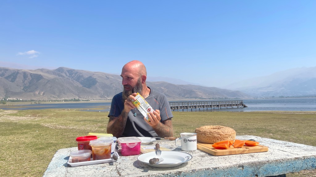 Am Samstagvormittag schauten wir uns in dem nicht wirklich sehenswerten Ort „Tafí del Valle“ um. Wir erkundigten uns bei der Touri-Info nach der Radtour, welche aus dem Ort hinaus die ganze Zeit über abschüssig am See vorbei und immer entlang des „Río de la Sosa“ geführt hätte. Leider konnte uns die Mitarbeiterin nicht sagen, ob die Möglichkeit bestünde die Räder am Ende die Tour in einen öffentlichen Bus zu packen um mit diesem wieder zum Ausgangspunkt zurück zu gelangen. So entschieden wir, auf Grund des starken Windes an diesem Tag, die Radtour sein zu lassen und fuhren stattdessen mit dem Van an den See. Dort wollten wir den restlichen Tag verbringen und auch übernachten. Prinzipiell wäre es sogar möglich gewesen dort zu angeln aber der niedrige Wasserstand machte das Fischen leider selbst vom Steg aus unmöglich. Wir parkten unseren Bus bestmöglich vor einer der vielen feststehenden Sitzgelegenheit um möglichst guten Windschutz zu haben. Plötzlich sah ich von der Bank aus ein uns gut bekanntes Auto auf den See zusteuern: Das französische Paar mit seinen beiden kleinen Kindern, welche wir zuvor bereits 3x an den verschiedensten Orten getroffen hatten. 😍 Und dass, obwohl die beiden eine völlig andere Route als wir verfolgen und mitunter wüsten Zick-Zack Kurs fahren. Sie kamen gerade aus Bolivien und waren nun erneut auf dem Weg nach Brasilien, um dort bei Bekannten die reparierte Drohne sowie Weihnachtspäckchen für die Kinder abzuholen. Apropos Drohne: Als wir „August“ von unserem Missgeschick und dem benötigten, aber nicht vorhandenen Werkzeug erzählten, kramte er kurzerhand in seinem Van und zauberte tatsächlich den 1mm Torx hervor. 😁 Mit diesem konnte Simon auch unsere Drohne wieder reparieren und wir hoffen, dass sie beim nächsten Test wieder richtig funktionieren wird. Leider konnten die Franzosen nicht über Nacht bleiben, sondern mussten wegen ihrer Wäsche wieder zurück in den Ort. Wir sind echt gespannt, wann und wo sich unsere Wege wohl wieder kreuzen werden. 😅 Als wir uns verabschiedet hatten rasierte mir Simon draußen auf der Wiese noch meinen under cut nach bevor ich mich unter die warme Dusche stellte. Die Haarwäsche war auch diesmal wieder längst überfällig… 🙈🙊🙉 Am Abend fuhr noch der lokale Dorf-Polizist vorbei und gab uns grünes Licht für die Übernachtung am See. Wenn etwas sein sollte oder wir ihn bräuchten, dann wäre er quasi in dem kleinen Häuschen um die Ecke oder wir sollten einfach den Notruf wählen. 👍 Danach machten wir aus unserem restlichen Pizzateig vom Vortag noch einmal drei leckere Pfannen-Pizzen und mit der restlichen Frischhefe setzte ich noch einen Brotteig für den kommenden Morgen an. Zur Feier des Tages (am 05.11. war unser sage und schreibe 25.ster Jahrestag ❤) hatte ich zum Essen unseren schönen Teelichthalter auf den Tisch gestellt. Leider übersah Simon diesen, als er gegen später den Tisch abwischte und fegte die Kerze dabei vom Tisch. Schöner Mist… Das Kerzenwachs hatte sich auf die diversesten Gegenstände verteilt und so durften wir erst einmal eine ganze Weile Wachs abkratzen. Zum Glück bekamen wir, bis auf die Kissenhülle, alles wieder sauber! Kerzen zünden wir ab sofort also, wenn überhaupt, nur noch im Freien an. 😕 Als kleine Entschädigung durften wir dann im Dunkeln noch einen herrlichen Blick über den See auf das gegenüber am Hang liegende, erleuchtete „Tafí del Valle“ genießen.