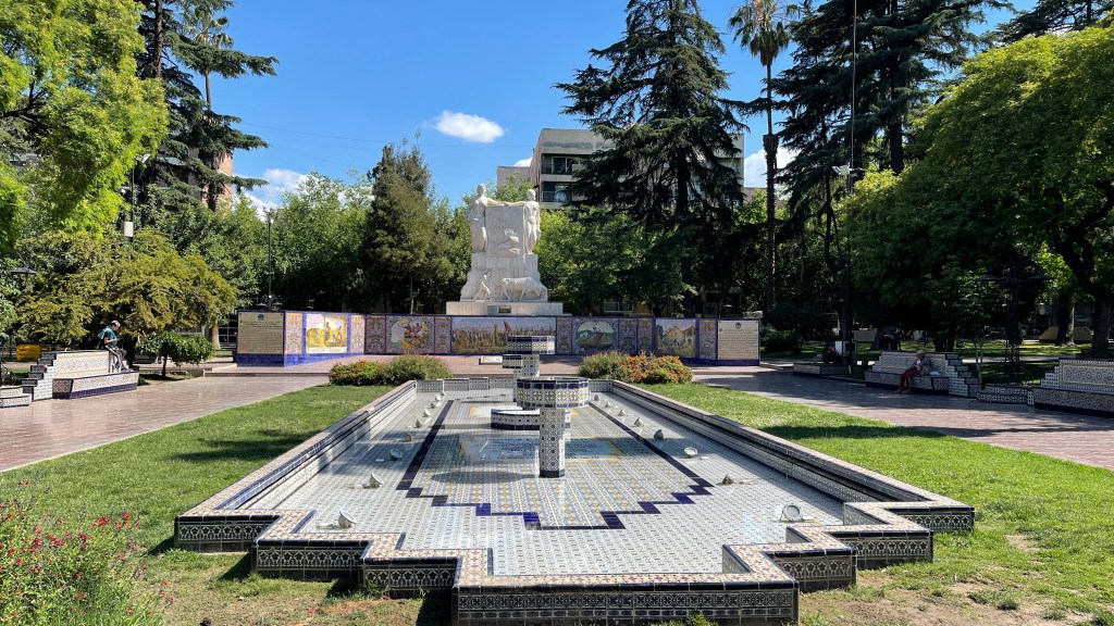 Am Sonntagmorgen ging die Reise weiter bis nach „Mendoza“ auch wenn wir die Fahrt für mehrere Toilettenstopps unterbrechen mussten. Leider ging es Simon in der Hinsicht immer noch nicht wirklich gut. 😰💩 Die Obst- und Gemüsekontrolle hingegen verlief völlig unspektakulär. An der Grenze zum Staat Mendoza hätten wir für unser Fahrzeug eigentlich 270 Pesos Gebühr (für was auch immer?!) zahlen müssen. Mangels Wechselgeld mussten wir dann aber nur 200 Pesos bezahlen, so wie die ganz normalen PKWs auch. 👍 An dem folgenden Grenzposten mussten wir kurz anhalten und wurden gefragt, ob wir Obst und/oder Gemüse dabeihätten. Ich antwortete der Dame, fast wahrheitsgemäß, dass wir nur noch eine Zwiebel und etwas Knoblauch hätten woraufhin sie uns freundlich durchwinkte. Nur die eine Zitrone habe ich verschwiegen aber ansonsten hatten wir tatsächlich nichts mehr dabei. 🤭 In „Mendoza“ angelangt konnten wir unseren Van problemlos sehr zentral und kostenfrei abstellen, da sonntags keinerlei Parkgebühren verlangt werden. Dafür hatte aber mal wieder fast alles geschlossen… Wir liefen durch das wirklich sehr schöne Zentrum welches uns sehr an Spanien erinnerte. Alle Straßen waren links und rechts von großen, schattenspendenden Bäumen gesäumt wobei es an diesem Tag mit ca. 24 °C sowieso sehr angenehm war. In der Stadtmitte befindet sich die große „Plaza Independencia“ mit einem hübschen Springbrunnen, einem Museum sowie vielen Sitzgelegenheiten. Dieser Hauptplatz wird noch einmal von vier weiteren, kleineren Plazas wie z.B. der wunderschönen „Plaza Espana“ im maurischen Stil eingerahmt. Dazwischen befinden sich Fußgängerzonen mit netten Cafés, Eisdielen und Restaurants. Nach unserem Stadtspaziergang fuhren wir dann noch zu einem außerhalb gelegenen, großen „WALMART“ alias „Hiper Chango Mas“. Nach den vergangenen Tagen in der Pampa und auf Grund der Tatsache, dass wir wegen der Lebensmittelkontrollen kaum Frischware gekauft hatten war mal wieder ein Großeinkauf angesagt. Eines kann ich euch mit Sicherheit sagen: NIE wieder gehe ich in einen so großen Einkaufsmarkt und schon gar nicht sonntags abends, wenn noch dazu Black Friday Aktionen gespielt werden. 🙈🙉🙊 Nach dem wir wegen der ganzen 3für2 / 2für1 usw. Aktionen sowieso schon ewig für die Preisvergleiche gebraucht hatten traf uns schier der Schlag, als wir uns dann endlich an der Kasse anstellen wollten. Ich garantiere euch, dass ihr eine solch lange Schlange in einem Supermarkt noch nie gesehen habt. Im ersten Moment war ich drauf und dran unseren vollen Wagen einfach stehen zu lassen aber bis wir woanders wieder alles beisammengehabt hätten, hätte es wahrscheinlich ähnlich lange gedauert. So fügten wir uns unserem Schicksal und reihten uns am Ende der Warteschlange ein. Es dauerte tatsächlich fast 45 Minuten, bis wir unsere Waren endlich auf das Band legen konnten. Aber unvorstellbarer Weise, und das ist uns wirklich schön häufiger aufgefallen: Hier haben ALLE die Ruhe weg. Die Kassierer/innen sowieso aber alle einkaufenden Personen haben hier IMMER alle Zeit der Welt und die Ruhe weg. Vollkommen anders, als bei uns zuhause wo jeder im gehetzt ist und 10x genervt auf die Uhr schaut (ich gehöre ehrlich gesagt auch eher zu diesen Personen aber ich glaube tatsächlich, dass sich dies während der Reise schon etwas gebessert hat 😜). Schnell mal in der Mittagspause einkaufen ist hier auf jeden Fall definitiv nicht möglich. So war es dann auch schon kurz nach 21 Uhr bis war an unserem Stellplatz für die heutige Nacht, einer großen „YPF“ Tankstelle mit großartiger Sicht auf die leicht verschneite „Cordillera“ im Hintergrund, angelangt waren.