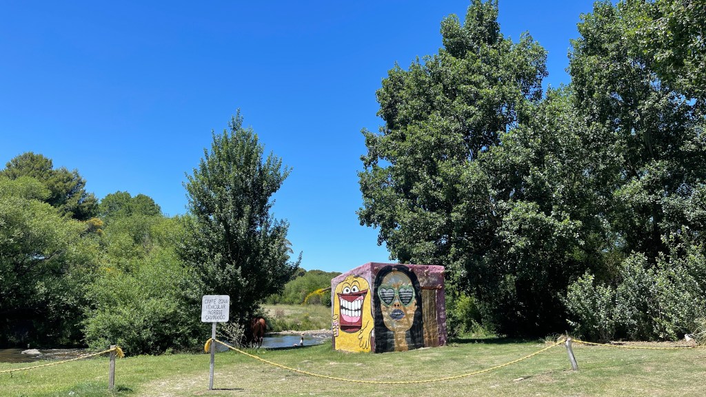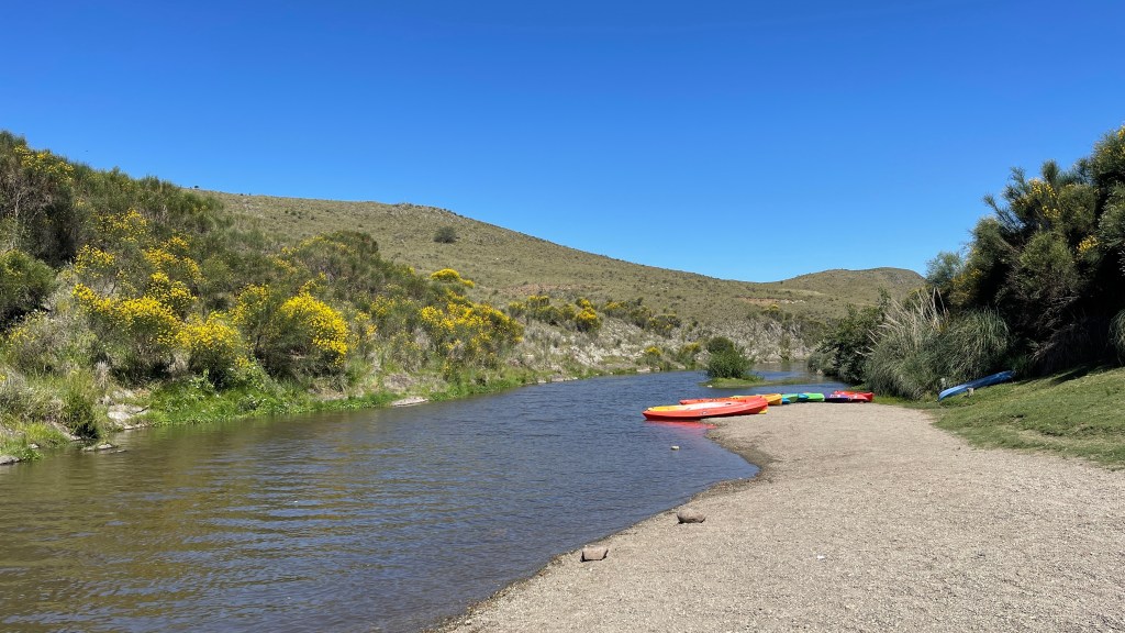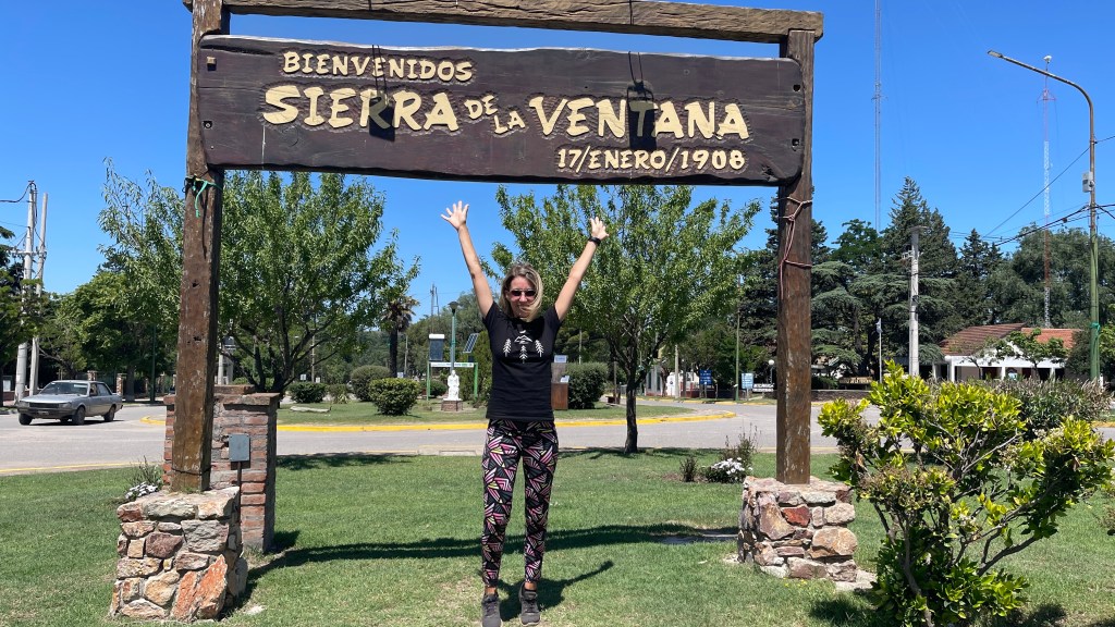 Am nächsten Morgen ging es weiter in das hübsche, kleine Örtchen „Sierra de la Ventana“. Dieses liegt malerisch in einem Tal durch welches ein Fluss mit vielen Badestellen fließt. Die Berge in der Umgebung eignen sich außerdem gut zum Wandern oder Mountainbiken. Dort angekommen fanden wir per Zufall sofort einen perfekten Stellplatz mit viel Schatten, Tischen, Bänken und Grillstellen sowie direktem Zugang zu einer Bademöglichkeit im erfrischenden Fluss. Wir schauten uns in dem kleinen Örtchen um in welchem es einige nette Cafés und Restaurants sowie schöne Kunsthandwerkslädchen gab. Vom „Mirador“ aus auf dem einzig größeren Hügel hatten wir eine schöne Rundumsicht auf die umliegenden Berge und Felder. „Sierra de la Ventana“ wird im Sommer wohl auch gerne von den Einwohnern der Hauptstadt für die Sommerfrische genutzt. Entsprechend viele kleine und hübsche Ferienhäuschen bietet der Ort, die meisten verfügen sogar über einen Garten mit Pool. 😎 Da die kleinen Supermärkte nachmittags noch geschlossen hatten kauften wir uns in einer Eisdiele für umgerechnet 2,50 € einen Viertelliter Eis (welchen wir natürlich geteilt haben) bestehend aus drei verschiedenen Sorten nach Wahl. 👍 Wir schauten uns noch zwei andere mögliche Stellplätze in der Umgebung an aber da uns keiner so gut gefiel wie der, den wir am Morgen entdeckt hatten, kehrten wir postwendend dorthin zurück. Simon nutzte am Nachmittag noch die Zeit um das alte und vermutlich nach drei Jahren leider bereits brüchig gewordene Silikon an unserer Heckdachluke zu entfernen. Hoffentlich werden wir alles in Kürze reparieren können! 😨 Ansonsten haben wir beim nächsten Gewitter oder größeren Regen ein ernsthaftes Problem. Ich schrieb derweil seit längerem mal wieder an meinem Blog da ich während der Zeit, die wir in „Buenos Aires“ bzw. „Saladillo“ verbracht hatten, überhaupt nicht dazu gekommen war. 🙈 Abends aßen wir die restliche, aufgewärmte Bolognese vom Vortag bevor wir es uns im Bettchen gemütlich machten. Diesmal war es sogar so frisch abends als dass ich mit langer Hose schlafen musste. Und keine zwei Tage zuvor konnten wir auf Grund der Hitze nachts kaum schlafen – schon ein bisschen verrückt…