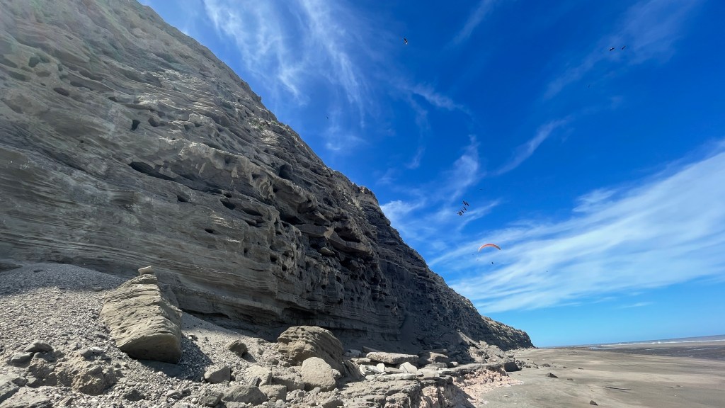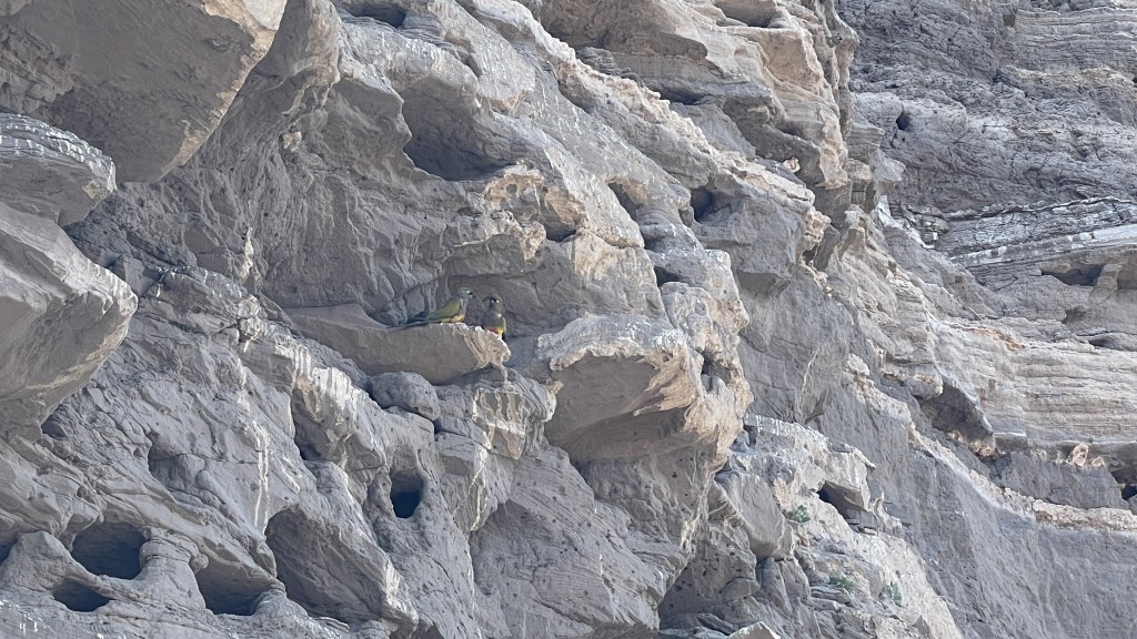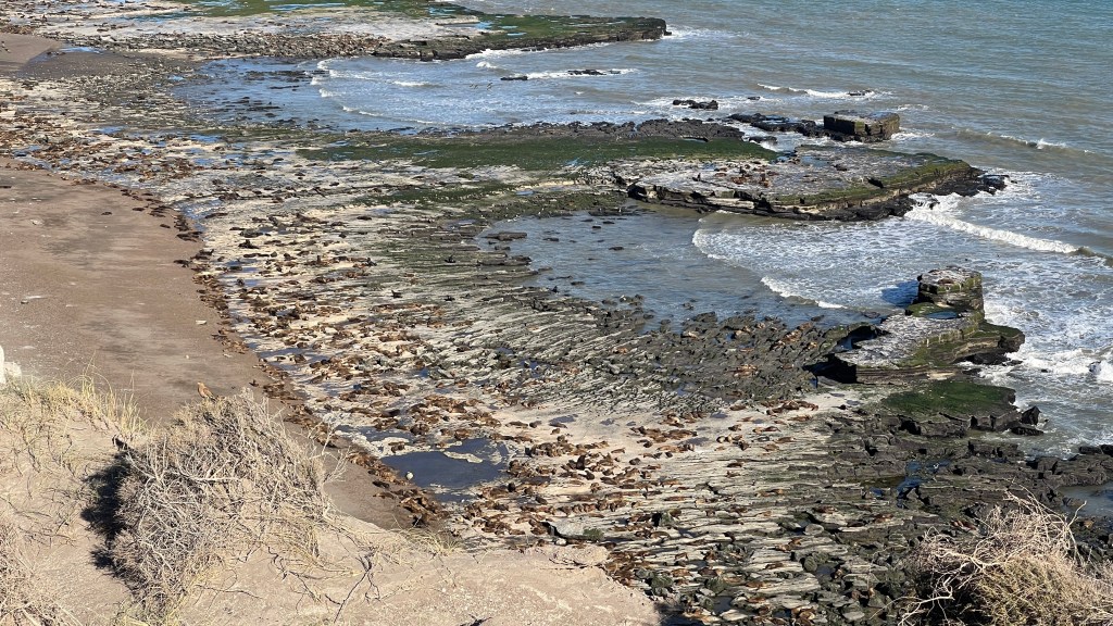 Den Sonntagvormittag verbrachten wir ebenfalls noch an der Tankstelle. Dort nutzten wir das gute Internet, um endlich seit langem mal wieder ein YouTube Video fertigzustellen und hochzuladen. Durch Simons längere Krankheit und die Tage in „Buenos Aires“ bzw. „Saladillo“ hängen wir damit derzeit leider ordentlich hinterher. 😣 Währenddessen konnte auch das Silikon der Dachluke noch etwas weiter antrocknen. Wir füllten noch unseren Diesel-Tank und machten uns gegen 14 Uhr über die Ruta N1 auf den Weg nach „El Cóndor“. Über Instagram hatten wir von anderen Deutschen, die vor kurzem dort waren, den Tipp erhalten uns dort unbedingt die Sittiche- und Seelöwenkolonie anzuschauen. In den Felsenwänden an der Küste nisten von Oktober bis Januar viele Hunderte Sittiche. 🐦 Es soll sich hierbei tatsächlich um die weltweit größte Kolonie handeln. Die Vögel verbreiten mit ihrem Geschrei eine mordsmäßige Geräuschkulisse und wir konnten sie sowohl bei der Nahrungssuche in den umliegenden Feldern, als auch beim Ein- und Ausfliegen in ihre Bruthöhlen, beobachten. Über einen Trampelpfad gelangten wir als erstes zu einem Leuchtturm, von wo aus wir eine herrliche Sicht über den breiten Strand, den Ozean sowie das Örtchen hatten. Endlich wieder am Meer, was für ein tolles Gefühl! 😎 Der Pfad führte weiter zu einem Heldendenkmal für die im Kampf um die Falklandinseln Gefallenen inklusive ausrangiertem Düsenjet. Man sieht immer wieder Schilder an den Straßen oder auch Aufkleber auf Autos sowie LKWs, auf denen die zu England gehörende Inselgruppe als Teil Argentiniens reklamiert wird. An einem Loch im sandigen Boden entdeckten wir mehrere der kleinen Eulen, welche wir auch schon zuvor in Brasilien gesehen hatten. Scheinbar handelte es sich hierbei um deren Nest denn als wir näherkamen, flogen die beiden Eltern mit lauten Warnschreien davon und die Jungen versteckten sich gut in dem Erdloch. Vermutlich konnten die Kleinen noch nicht fliegen. Über den Strand, von welchem aus wir eine gute Sicht auf die vielen Sittiche in der steilen Felswand hatten, ging es dann wieder zurück zum Parkplatz. Wieder am Auto angekommen aßen wir noch eine Kleinigkeit mit Blick aufs Meer bevor wir ein paar Kilometer weiter nach „La Lobería“ fuhren. Dort kamen wir gerade noch rechtzeitig am View-Point auf die Seelöwen-Kolonie an. Der alte Wanderweg wurde nämlich gesperrt und es gibt nur noch einen einzigen Zugang, an dem sich auch ein Museum sowie ein Park-Ranger befinden. Und dieser war just im Moment unseres Ankommens schon fast im Begriff den Zugang zu schließen. Freundlicherweise lies er uns aber noch passieren. So konnten wir noch einen schönen Blick auf die vielen Hundert Seelöwen und Seeelefanten erhaschen welche am Strand und auf den Felsen unter uns in der Sonne lagen. Wir hatten eigentlich gehofft dort übernachten zu können aber da der Parkplatz abends geschlossen wird war dies leider nicht möglich. Dementsprechend fuhren wir noch einige Kilometer weiter die ab „La Lobería“ nicht mehr asphaltierte RN1 entlang. Die Straße führte nun als Schotterpiste weiter, war aber dennoch sehr gut befahrbar und bot vor allem unglaublich schöne Sicht auf die Küste. Deshalb trägt die Straße auch den Namen „Camino de la Costa“. 😍 Nach ein paar Kilometern fanden wir eine geeignet erscheinende Parkbucht am Straßenrand. Da hier kaum Verkehr herrschte hatten wir keinerlei Bedenken hier die Nacht zu verbringen. So konnten wir seit langem mal wieder den absoluten Luxus genießen, ganz allein direkt am Meer zu stehen und mit Meeresrauschen einzuschlafen. 🥰