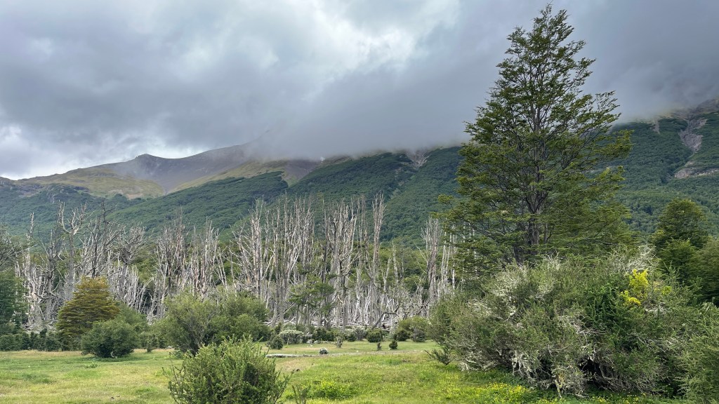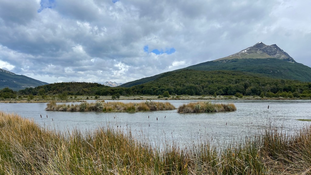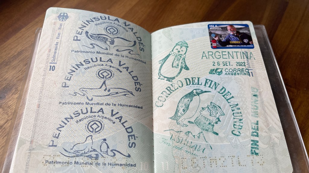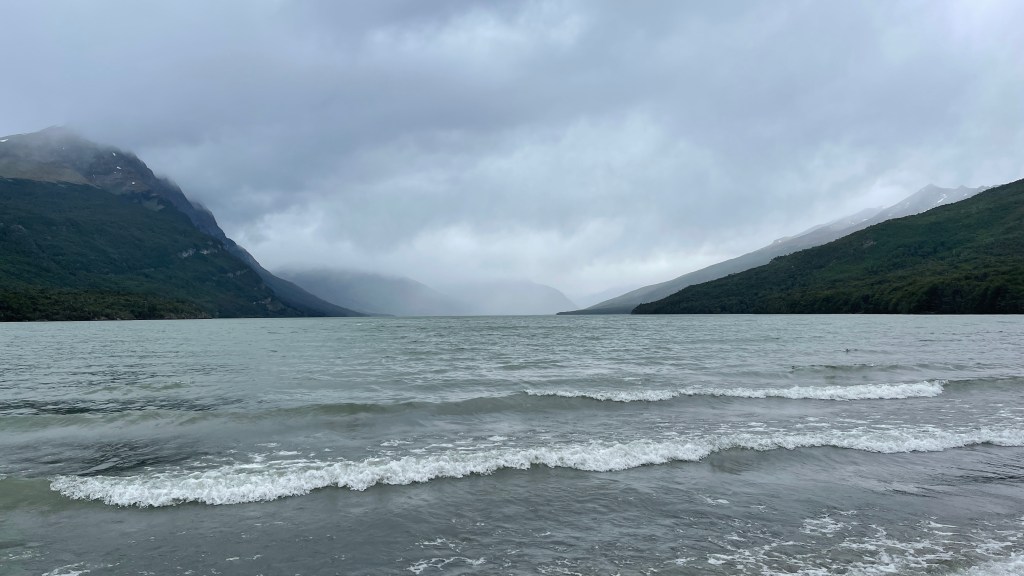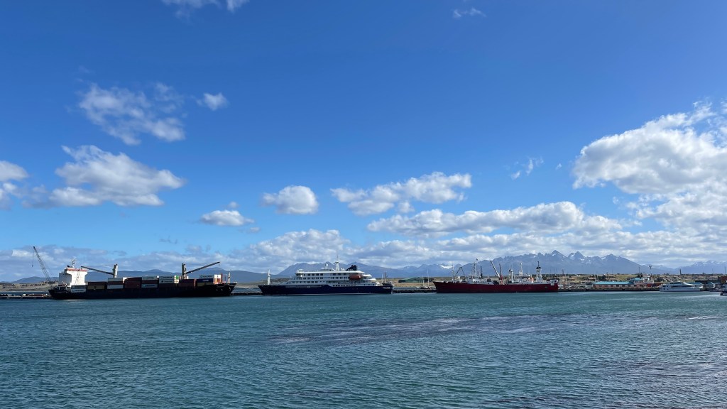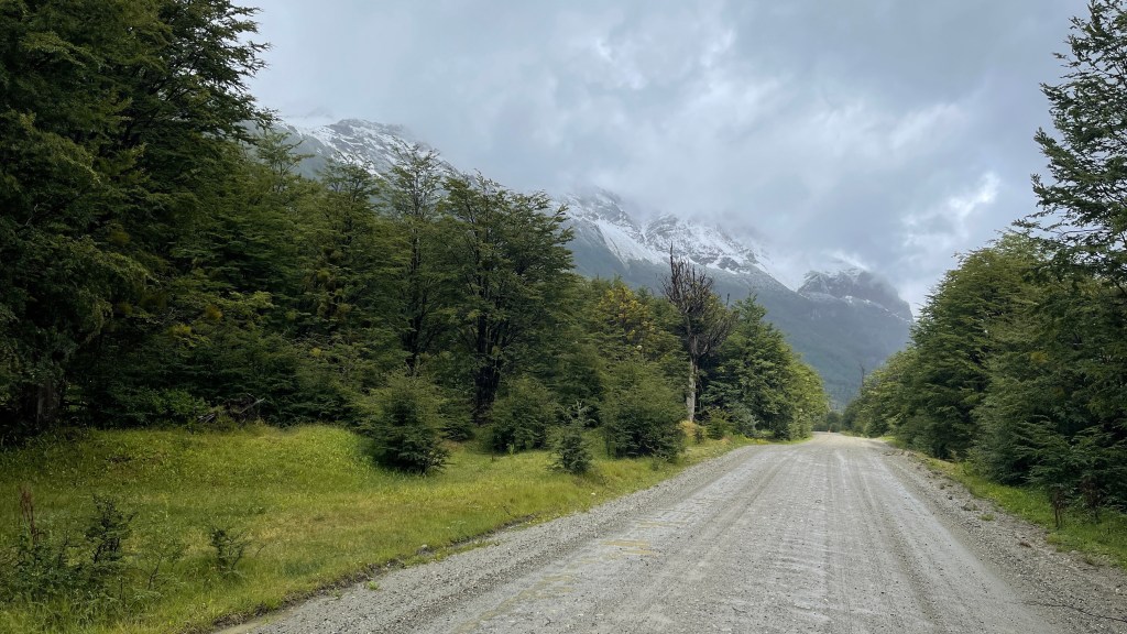 Bereits in der Nacht setzte der vorhergesagte Regen ein und weckte uns mit leichtem Prasseln auf die Dachluke, welche den ersten Regentest glücklicherweise mit Bravour bestand, auf. Nach dem Aufstehen hatten wir im ersten Moment etwas Sorge, ob der Wiesengrund vielleicht schon zu matschig geworden sein könnte als dass wir diesen ohne uns festzufahren wieder verlassen könnten. Aber dies erwies sich als völlig unbegründet und wir gelangten ohne Schwierigkeiten zurück auf die Schotterstraße. Wir passierten erneut die „Estancia Harberton“ und fuhren entlang der roten Moore sowie der zahlreichen Flussläufe, Tothölzer und Wälder den gleichen Weg zurück den wir zuvor gekommen waren. Diesmal bot sich uns jedoch ein herrlicher Ausblick auf zum Teil verschneite Berggipfel und bereits während der Fahrt lies der Regen nach. Wieder an der Ruta N3 angelangt bogen wir diesmal nach links in Richtung „Ushuaia“ ab. Dort angelangt stoppten wir an einer Tankstelle um auf deren Parkplatz erst einmal in Ruhe zu frühstücken. Als ich das erste Spiegelei in die Pfanne schlug bemerkte ich allerdings, dass die Gasflamme plötzlich erloschen war. Nach knapp viereinhalb Monaten waren unsere fünf Kilogramm Gas wohl aufgebraucht. 😯 Als wir in der „iOverlander“ App nach der nächstgelegenen Gasstation schauten zeigte diese eine in 160 Meter Luftlinie an. Und tatsächlich: Beim Blick aus dem Seitenfenster konnten wir das Gebäude sogar sehen! Mehr Glück kann man wohl nicht haben zumal es der 23.12., also kurz vor den Feiertagen, war. 👍 So füllten wir nach dem Frühstück ohne jegliche Probleme unsere Gasflasche wieder auf, bevor wir an der Tankstelle das dortige WLAN für Weihnachtsanrufe und Grüße nutzten. Danach fuhren wir hinunter in die Stadt wo wir im Supermarkt noch ein paar Lebensmittel für die Weihnachtsfeiertage einkauften. Wir erkundigten uns im besten Restaurant der Stadt nach deren Menü-Preisen, welche uns mit 250 € pro Person (inklusive jeweils passender Weinbegleitung) dann allerdings doch zu teuer war. 🙈 Die anderen zwei in Frage kommenden Restaurants hatten um die Uhrzeit noch geschlossen so dass wir auf Spontanität am Heiligabend setzten. Wir schauten uns noch auf der relativ touristischen Einkaufsmeile um wo wir einige nett aussehende Cafés und Bäckereien entdeckten. An einem der zahlreichen Parkplätze an der Uferpromenade trafen wir mal wieder (wenn auch diesmal fast erwartet) unsere Lieblingsfranzosen welche für die Nacht jedoch in den nahegelegenen Nationalpark weiterzogen. So übernahmen wir quasi ihren Stellplatz in 1A Lage ganz zentral in „Ushuaia“. Vom Inneren unseres Vans aus konnten wir sogar dem großen Kreuzfahrtschiff „Sapphire Princess“ beim Anlegen zuschauen. Es ankerte nur wenige hundert Meter von uns entfernt und auch ein größeres Militärschiff wendete direkt vor unserer Nase. Uns beiden war bis dato gar nicht klar gewesen, dass „Ushuaia“ für uns wohl ein sehr bedeutsamer Wegpunkt auf unserer Reise darstellte. Oder war es nur die grandiose Lage der Stadt, umgeben von schneebedeckten Berggipfeln sowie Wäldern direkt am „Beagle Kanal“ welche uns derart beeindruckte und emotional mitnahm??? 🤔 Im Hinblick auf diese sehr besondere Lage zogen wir übrigens, wie schon öfters seit unserer Reise durch Argentinien, auch mal wieder parallelen zu Neuseeland. Nur dass das Reisen im Land der Kiwis eindeutig kostspieliger ist als hier. Dafür sind in Argentinien die Entfernungen größer. 🤣 Aber ansonsten vereinen tatsächlich beide Länder ALLE nur erdenklichen Landschaftsformen.