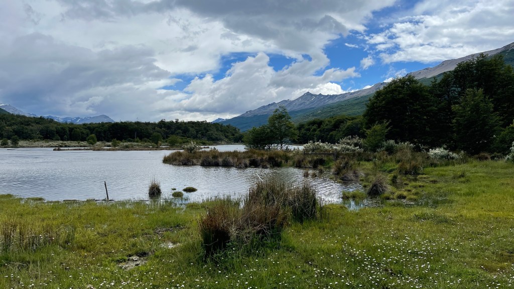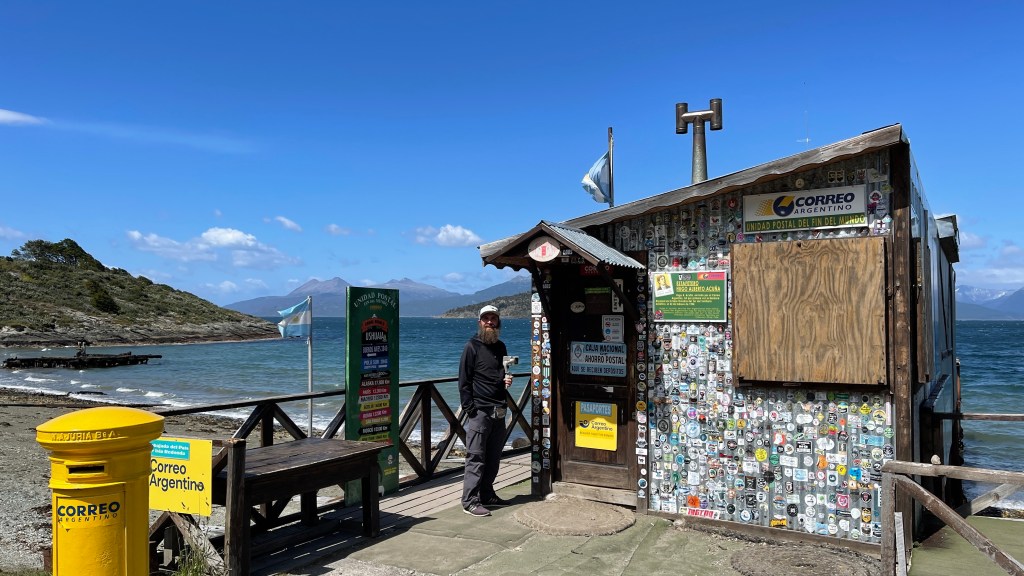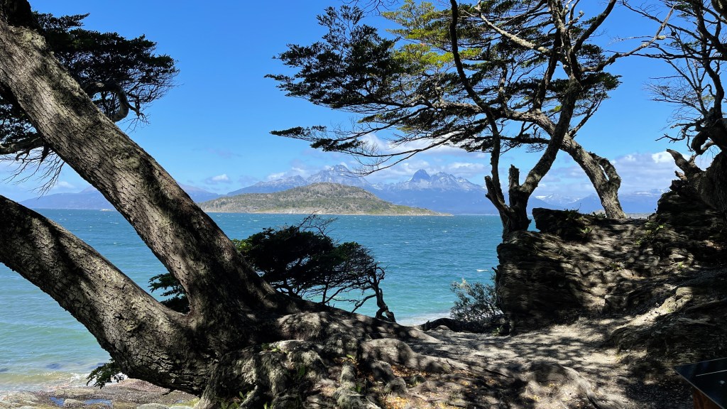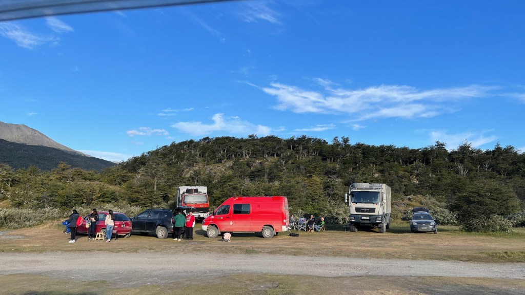 Die erste Nacht verbrachten wir auf einem von insgesamt drei kostenfreien Campingplätzen innerhalb des Parks welcher sogar gut vor Wind geschützt war. Simon wollte gerne ausschlafen was wir dann auch taten. Bei mir führte dies allerdings dazu, dass ich total matschig und mieslaunig mit Kopfschmerzen aufwachte. Zu viel Schlaf bekommt mir einfach nicht. 🤷♀️ Da es bereits kurz vor Mittag war frühstückten wir ausnahmsweise direkt nach dem Aufstehen. Unweit entfernt, unten an der Küste, lag das „südlichste Postamt der Welt“ welches am ersten Weihnachtsfeiertag allerdings geschlossen hatte. Vom steinigen Strand aus hatte man bereits eine tolle Sicht auf die gegenüberliegenden, zum Teil noch mit Schnee bedeckten Berge. Hier befindet sich auch der Einstieg zum Wanderweg „Senda Costera“ welcher sich one way etwa 8 km immer entlang der Küste schlängelt. Bei herrlichstem Wetter starteten wir unsere Wanderung. Nur der heftige Wind zwang uns dazu mehrere Lagen Oberbekleidung übereinander zu tragen. 😅 Wir liefen ca. 1/3 des Weges entlang welcher unglaublich schöne Ausblicke auf die in der Sonne tanzenden kleinen Schaumkronen auf dem Meer sowie die dahinter liegenden Berge bot. Anschließend machten wir kehrt und liefen den gut angelegten Wanderpfad zwischen Küste und Wald zum Stellplatz zurück. Von dort aus fuhren wir weiter bis zum Ende der Ruta N3 welches sich innerhalb des Nationalparks befindet. Weiter südlich kommt man mit dem Auto somit nicht mehr. Hier befand sich auch ein Schild mit der Aufschrift „von hier aus noch 17.848 Kilometer bis Alaska“. Na das wird ja ein Klacks! Etwas mehr als 16k Kilometer haben wir in den vergangenen fünf Monaten ja schon hinter uns gebracht. Wobei ich befürchte, dass es nicht bei dieser Angabe bleiben wird, sondern wir am Ende nach diversen Abstechern doppelt so viele Kilometer hinter uns gebracht haben werden. 🙊 Dort machten wir erst einmal Kaffeepause bevor wir die zweite Wanderung des Tages starteten. Diese führte uns als erstes zu einer Aussichtsplattform hinaus auf den Fjord und die kleinen Schären-Inselchen in der Bucht von „Lapataia“. Hier zweigte ein Wanderpfad ab welcher uns durch einen Ulmenwald und über Wiesenpfade bis zum Ufer brachte. Entlang des Weges konnten wir wilde Orchideen sowie Johannisbeersträucher entdecken. Am Ende gelangten wir bei einer kleinen Bucht mit einem winzigen Leuchtturm an. An den Felsen wuchsen diverse Muschelarten und das Wasser war mal wieder kristallklar und zu unserer großen Überraschung nicht einmal wirklich kalt. Wir setzten uns auf die Felsen am steinigen Strand und genossen die Aussicht hinaus aufs Wasser, die Inselchen sowie die zum Teil bewaldeten Berge im Hintergrund. Auf dem Rückweg liefen wir noch ein paar Meter weiter bis zu einer Aussichtsplattform etwas oberhalb von wo aus wir noch einmal einen tollen Rundumblick über die Bucht hatten. ☺ Von diesem südlichsten Zipfel aus fuhren wir wieder ein paar Kilometer zurück bis zum zweiten Campingplatz, welcher idyllisch vom Flussarm des „Brazo Ovando“ innerhalb der „Laguna Verde“ liegt. Dort lernten wir nicht nur unsere Instagram-Bekanntschaft „CuTe around the world“ (coester.blog), welche uns zuvor bereits freundlicherweise sehr gute Reisetipps gegeben hatten, endlich persönlich kennen. Wir trafen hier auch auf weitere Deutsche die jeweils mit großen Expeditions-Mobilen unterwegs sind. Florian stammt irrwitziger Weise ursprünglich sogar aus Ettlingen und reist mit seiner Frau Barbara und den beiden Kindern Benedikt und Emil, beide im Kindergartenalter, in einer alten IVECO-Feuerwehr mit selbst ausgebauter Wohnkabine seit einigen Monaten durch Europa und Südamerika. Falls euch deren Reise interessieren sollte schaut gerne mal auf ihrer Homepage „Vierim4x4“ vorbei. Das andere deutsche Paar ist ebenfalls in einem mächtigen MAN mit sehr geräumigen Wohnkabinen-Aufsatz unterwegs. Wir gesellten uns mit unseren Campingstühlen noch eine Weile zu ihnen bevor wir abends seit längerem mal wieder leckere Pfannen-Pizza zubereiteten während die anderen gemeinsam grillten. 🍕🍷🍗 Nach dem Essen setzen wir uns noch einmal zu ihnen bevor es dann irgendwann zu frisch wurde und wir uns in unser warmes, kuscheliges Bettchen verzogen. Bei unserer Ankunft war der Parkplatz noch ziemlich gut gefüllt gewesen aber als die Tagesausflügler weg waren blieben nur noch wenige Übernachtungsfahrzeuge übrig. 👍