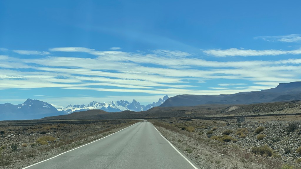 Wir hatten, trotz der Vielzahl an Campern um uns herum sowie der Nähe zur Straße, eine unglaublich ruhige Nacht auf dem Parkplatz. Als wir ausgeschlafen hatten parkten wir auf den Wanderparkplatz am Ortsende um. Von dort aus starteten wir, nach dem wir uns beim Frühstück gestärkt hatten, unsere Wanderung zur „Laguna Capri“. Der sandige, breite Wanderweg war sehr gut angelegt so dass man anderen Wanderern gut aus dem Weg gehen konnte. Natürlich sind hier auf den Wegen in „El Chaltén“ sehr viele auf den Tracks unterwegs aber wir fühlten uns, zumindest hier, nicht wie auf der Autobahn und die Wanderer verteilten sich wohl ganz gut auf den Wegen. Um die Lagune herum verlief der Weg als Schlaufe, so dass es quasi ein halber Rundweg war von welchem wir immer wieder tolle Sicht auf den „Fitz Roy“ hatten. Aber auch die große Lagune mit ihren Kiesstränden konnte sich wirklich sehen lassen. Wäre das Wasser des Sees noch ein klein wenig ruhiger gewesen so hätte es ein fantastisches Bergpanorama Spiegelbild gegeben. Nach dem wir den Anblick genossen hatten machten wir uns auf den Rückweg zum Parkplatz. Von oben aus hatte man neuerdings einen tollen Blick auf die vielen Windungen des „Río de las Vueltas“. Nach insgesamt 10 Kilometern sowie machbaren 400 Höhenmetern gelangten wir schlussendlich drei Stunden später wieder bei unserem Van an. Vor diesem Stand just in dem Moment ein jüngerer Mann aus Weingarten bei Karlsruhe. 😃 Er hatte zuvor für ein Jahr in Argentinien gelebt und zeigt aktuell gerade seiner Freundin während einer vierwöchigen Rundreise die Highlights des Landes. Nach dem netten, kurzen Plausch liefen wir zu Fuß in das kleine, nur 1.600 Einwohner zählende Örtchen. Hier ist natürlich ALLES auf Tourismus ausgelegt: Restaurants, Bäckereien mit angegliederten Cafés, etliche Hotels bzw. Hostels, ein Spa sowie unzählige Tour-Offices ziehen sich durch den gesamten Ortskern. Dies schlägt sich, logischerweise, auf die lokalen Preise nieder was dazu führte, dass wir die eigentlich anvisierte Waffel mit diversen Topping-Möglichkeiten doch links liegen ließen. 8 Euro dafür sind, zumindest für hiesige Verhältnisse, schlicht weg zu viel. So kehrten wir in einer der Bäckereien ein wo wir uns mit einer „Empanada de Pollo“ sowie zwei süßen Teilchen stärkten. Am Nachmittag brachen wir dann auf zum „Lago del Desierto“. Die 37 km lange Strecke bis ans äußerste Ende des Tals führte mal wieder ausschließlich über eine Schotterpiste welcher die Halterung unseres Rückfahrkamera-Displays zum Opfer fiel. 🙈 Wir hatten den Halter schon einmal notdürftig reparieren müssen aber dem ständigen Hoppeln hielt das Flickwerk wohl nicht stand. 😕 Dort angekommen verzogen wir uns für die Nacht auf den hintersten Teil der Parkplätze.