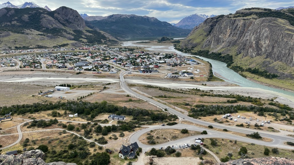 Am Donnerstagmorgen verließen wir nach rund einer Woche „El Calafate“. Dort nutzten wir im Ort noch die Möglichkeit, in einem „Pago Fácil“ Laden die Versicherungsgebühr für unseren Van zu entrichten. Wir hatten diese bereits vor Reiseantritt bei der „Allianz“ in Argentinien (www.speiserseguros.com.ar) für sechs Monate abgeschlossen und nun verlängert. Die Haftpflichtversicherung gilt in Summe für sechs Länder: Argentinien, Bolivien, Brasilien, Chile, Paraguay sowie Uruguay. Jetzt kommt der Clou: Von Deutschland aus bezahlten wir 103 US$ für die Versicherung und zusätzlich sage und schreibe 50 € Gebühr für die Auslandsüberweisung auf Grund der Fremdwährung. 🤮 Hier konnten wir nun bar mit argentinischen Pesos bezahlen (ohne Gebühren) und prompt belief sich die Versicherungssumme für weitere sechs Monate nur noch auf 80 €. 👍 Nach dem auch das erledigt war machten wir uns auf den Weg in das etwa 200 km entfernt liegende Wanderparadies „El Chaltén“. Bereits bei unserer Anfahrt hatten wir eine fantastische Sicht auf den großen Gletschersee „Lago Viedma“ sowie den berühmtesten aller Berge in Argentinien, den „Fitz Roy“. Wir parkten direkt am Ortseingang von „El Chaltén“ beim Besucherzentrum, wo es auch eine kostenlose Trinkwasserquelle gibt. In selbigem schauten wir uns kurz um bevor wir uns direkt von dort aus auf den Rundwanderweg „Los Condores & Las Águilas“ begaben. Von dem ca. 6 km langen Weg aus, auf welchem es humane 270 Höhenmeter zu bewältigen gilt, hat man einige Male schöne Aussichten. Sowohl hinunter auf den kleinen Ort, die Flusswindungen des „Río de las Vueltas“ aber auch die umliegenden Berge, darunter den „Fitz Roy“ und „Cerro Torre“. Als Übernachtungsspot wählten wir den großen Parkplatz direkt gegenüber des Besucherzentrums wo sich bereits etliche Camper versammelt hatten. Darunter auch „Klaus und Luise“, die aktuell mit ihrem „Toyota Landcruiser“ mit Aufstelldach Südamerika bereisen. Die beiden Rentner stammen aus dem wunderschönen „Oberkirch“ bei Offenburg und wohnen somit gar nicht weit weg von uns. Und obwohl wir schon etliche tolle Wanderungen in und um ihr wunderschönes Heimatörtchen herum gemacht haben können die beiden sich für wandern so rein gar nicht begeistern. 😅 Dafür waren sie bereits viele Male für mehrere Wochen zu zweit mit ihrem Motorrad in Afrika unterwegs. Nach dem wir im Tausendsassa „Omnia“ richtig knusprige Fischstäbchen zu unseren vom Vortag übrig gebliebenen Bratkartoffeln zubereitet hatten unterhielten wir uns noch bis Mitternacht angeregt mit den beiden. Ich glaube, wir alle hatten gar nicht bemerkt wie schnell die Zeit vergangen war. 🤣