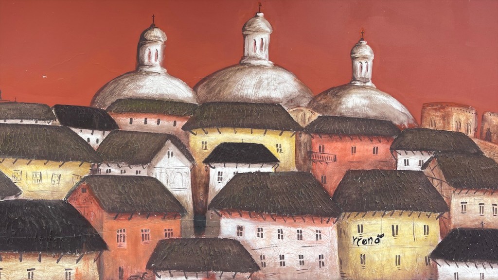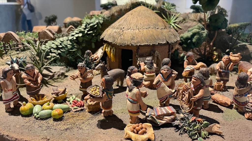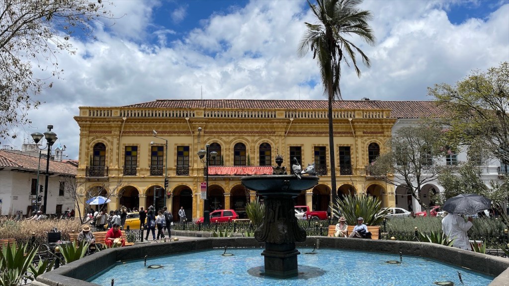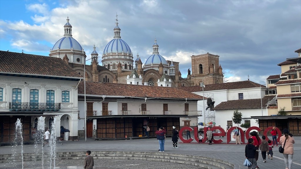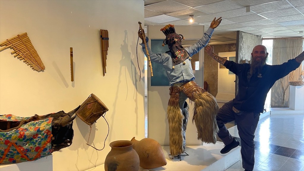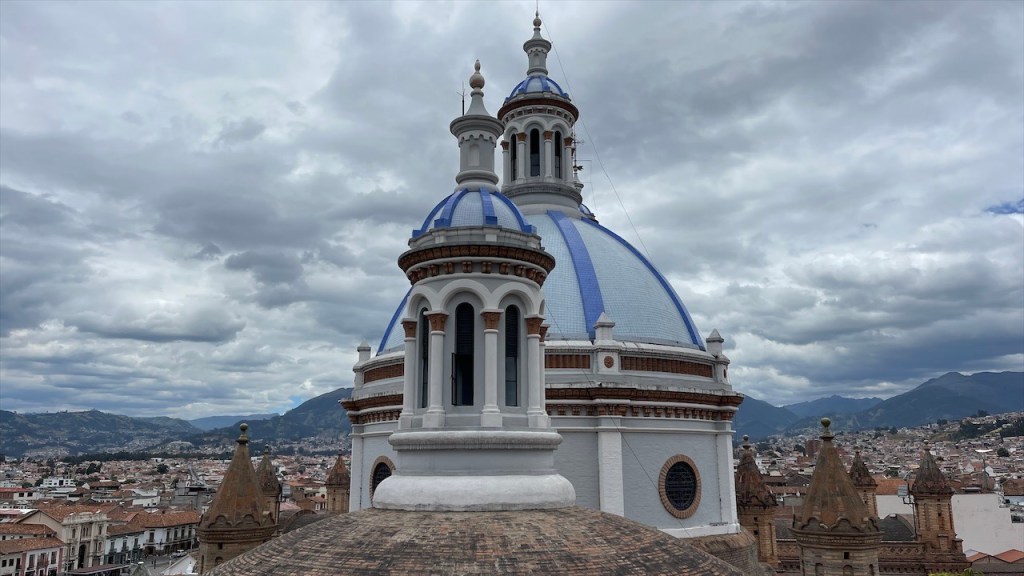Am nächsten Morgen ließ sich dann auch die Sonne wieder blicken aber wir machten uns dennoch, mit einem fertiggestellten YouTube Video in der Tasche, auf die Weiterfahrt nach „Cuenca“. Dank der gut ausgebauten Panamericana benötigten wir für die 250 Kilometer nur rund drei Stunden so dass wir bereits am späten Mittag in der 300k Einwohner zählenden Stadt ankamen. In der Nähe eines großen Stadtparks fanden wir, in bester Gesellschaft von einigen weiteren Overlandern, einen geeigneten und noch dazu bewachten Parkplatz. Von dort aus war es fußläufig nicht einmal weit bis zum kostenfreien, ethnografischen Museum „Pumapungo“. Im Erdgeschoss gab es neben antiken Keramikfunden auch sehr süße und extrem liebevoll gestaltete Miniatur-Häuser zu sehen. Diese stellten die unterschiedlichen Lebensräume bzw. Lebensformen innerhalb Ecuadors da, vom Amazonas bis zum andinen Hochland in welchem sich auch die UNESCO Welterbe Stadt Cuenca befindet. Die wahren Highlights warteten dann im Obergeschoss auf uns in Form von bunten Faschingsmasken, den dazugehörigen Kostümen sowie der Darstellung der diversen Ethnien in voller Lebensgröße. Wie ihr wisst sind wir keine großen Museumsgänger aber dieses können wir guten Gewissens empfehlen. 👍 Auf dem Weg in die historische Altstadt kamen wir an der tollen Bäckerei „Taita“ vorbei und auch diese können wir wärmstens empfehlen. Hier gab es nicht nur allerlei süßes sowie herzhaftes Gebäck aus Blätterteig sondern auch Brot sowie Brötchen aus Vollkornmehl. Sogar Sauerteigbrot hätte man hier käuflich erwerben können! Und teuer war unsere Kaffeepause auch nicht: Für drei Blätterteigteilchen sowie zwei Kaffees bezahlten wir gerade einmal 3,50 €. 😃 Frisch gestärkt liefen wir weiter ins Zentrum, vorbei an vielen Kirchen und einigen hübschen Fassadenmalereien. An diesem Sonntag wirkte die Innenstadt recht ausgestorben so dass wir die hübschen Kolonialgebäude in Ruhe genießen konnten. Auch die Kathedrale mit ihren blauen Kuppeln war von der Plaza de Armas aus ein imposanter Anblick. Nur leider hatte die Aussichtsplattform sonntags geschlossen. Auch die Markthalle hatte widererwarten nicht, oder nicht mehr, offen aber uns war sowieso klar, dass wir am Montag noch einmal wiederkommen würden.