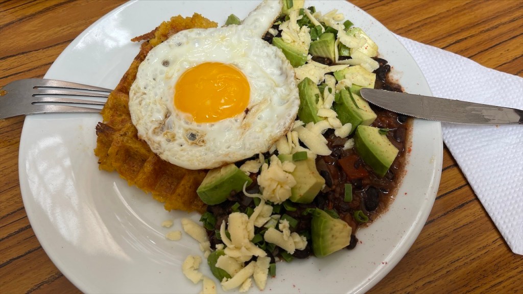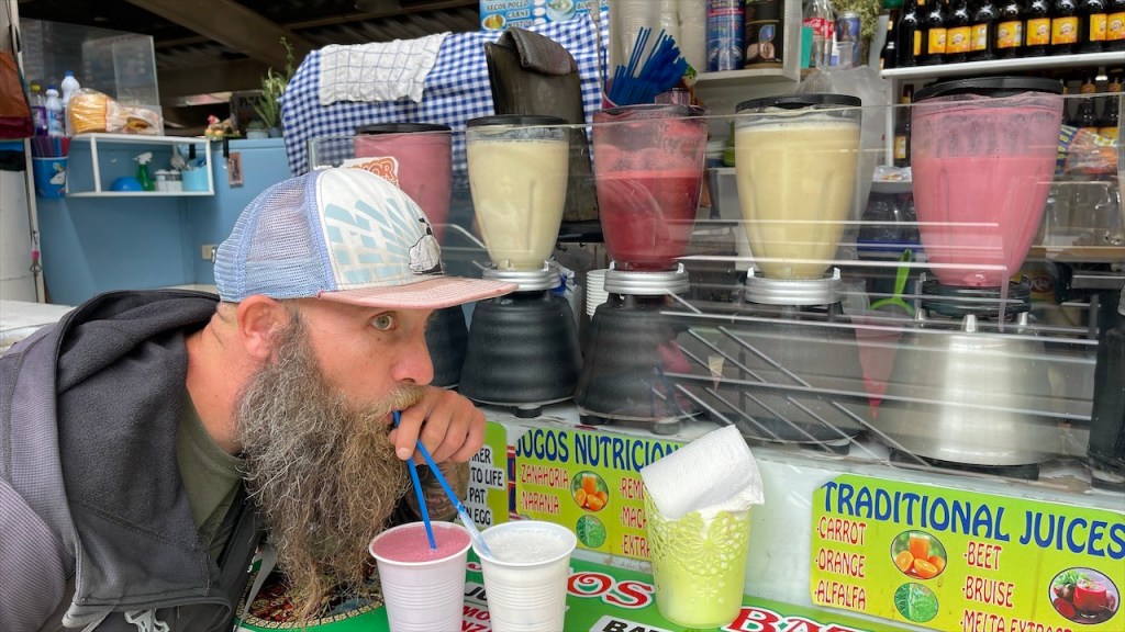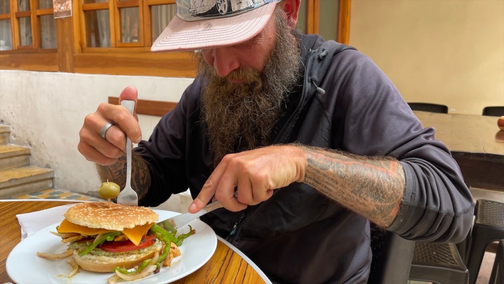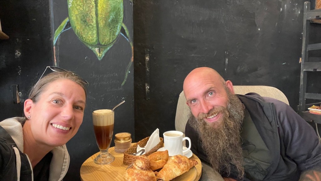 Erfreulicherweise herrschte in der Nacht nicht viel Verkehr in der Straße in der wir campierten und wir konnten uns am nächsten Morgen gut ausgeschlafen noch einmal ins Zentrum begeben. Cuenca ist übrigens die drittgrößte Stadt des Landes und, anders als der Name vermuten lässt, hat hier auch der Panama-Hut seinen Ursprung. Uns stand der Sinn aber nicht nach Hüten sondern nach Frühstück weshalb wir im vom Reiseführer angepriesenen Café „Nucallacta“ einkehrten. Simons bestelltes Sandwich entpuppte sich zwar als Burger und die Beilagen meiner herzhaften Waffel sahen auch etwas anders als beschrieben aus aber schmackhaft war zum Glück beides. 😋 Wenngleich es leider nicht zeitgleich serviert wurde. Nach einer netten Unterhaltung mit zwei anderen Reisenden machten wir uns dann auf zur am Vortag geschlossenen „Terraza Santa Ana“. Die Aussicht auf die schönen Kuppeln der Kathedrale war von dort aus leider gar nicht so schön wie erwartet da man relativ nahe an Selbigen dran war. Möglicherweise wäre die Roof Top-Bar eines Hotels gegenüber doch die bessere Wahl gewesen. 🤷♀️ Wir schlenderten weiter durch die nun deutlich belebteren Straßen bis zum Mercado wo uns diesmal ein wahres Obst- und Gemüseparadies erwartete. Nach dem wir uns in der oberen Etage noch einen Kokosnuss- bzw. Brombeermilchshake gegönnt hatten begutachteten wir die üppigen Auslagen der Stände und kauften etliches ein. Auf dem Rückweg zum Van entschieden wir uns spontan für einen Stellplatzwechsel und fuhren zum Campingplatz „Cabans Yanuncay“. Dieser lag etwas außerhalb des Zentrums, bot neben Duschen, einer Küche sowie WLAN auch schöne Stellplätze im Grünen und war somit deutlich ruhiger als der Vorherige. Der nette Inhaber „Humberto“ gab uns sogar noch etliche nützliche Tipps für den Nationalpark „Las Cajas“ welchen wir als nächstes ansteuern wollten und es blieb sogar noch Zeit zum Backen eines saftigen Bananen Brotes. 🍞🍌