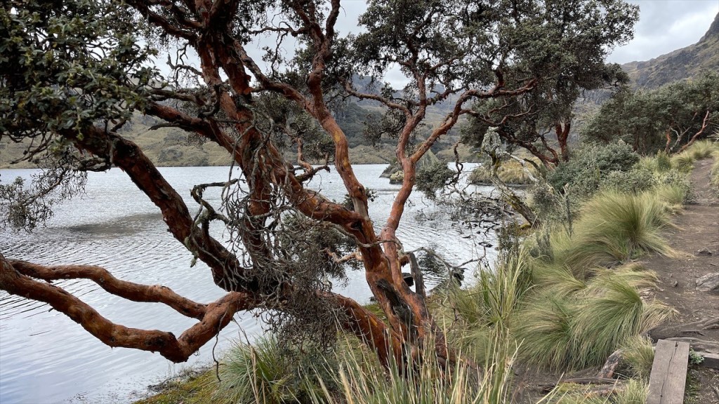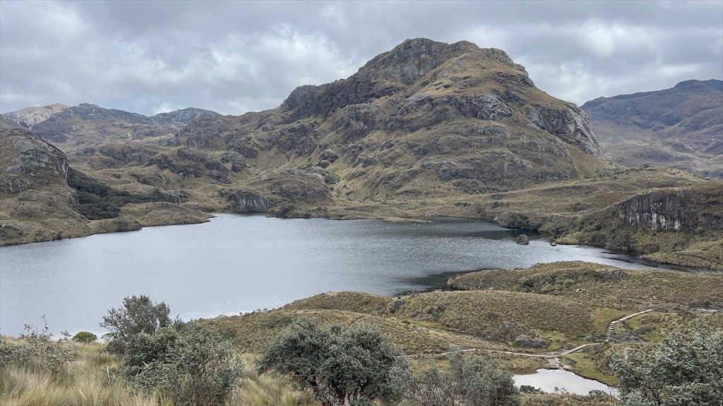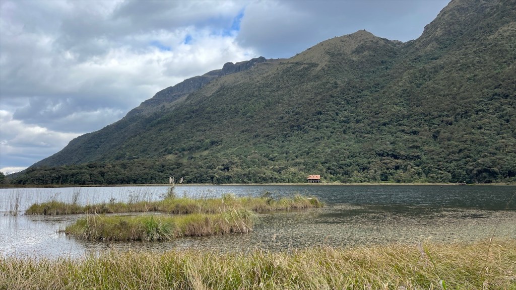 Den Dienstagvormittag verbrachten wir noch auf dem Campingplatz bevor wir uns auf den Weg in den nahegelegenen „Las Cajas“ Nationalpark machten. Um des besseren Schlafes willens fuhren wir als erstes in den unteren Bereich welcher etwa auf derselben Höhe der Stadt liegt. Insofern man den Park nur tagsüber besucht muss man hierfür nichts bezahlen. Wenn man jedoch, so wie wir, die Nacht auf dem Gelände verbringen möchte dann werden pro Person 4 USD fällig. Nach dem wir die Gebühr beglichen und uns registriert hatten, stellten wir unseren Van auf dem dazugehörigen Parkplatz ab wo wir erneut auf zwei andere Camper trafen die zuvor auch schon mit uns auf dem Campingplatz gestanden hatten. 😅 Während wir Kaffee tranken und dazu unseren leckeren Kuchen aßen unterhielten wir uns noch super nett mit zwei Reisenden aus Bremen. Also eins steht fest: Sobald wir wieder in Deutschland sind MÜSSEN wir in die Hansestadt! Hier scheint uns nur tolle Menschen zu geben. 😉 Wie so oft bisher in Ecuador war der Himmel am Nachmittag bewölkt aber da es nicht wirklich nach Regen aussah absolvierten wir noch einen kleinen Spaziergang. Wir umrundeten eine der größeren Lagunen von denen es hier, kein Scherz, über 4.200 gibt. 😲 Die natürlichen Becken sind wohl ein Überbleibsel der letzten Eiszeit und auf der Landkarte sieht dies völlig verrückt aus. Der Weg war gut angelegt und führte, wie schon im zuvor besuchten Nationalpark „Podocarpus“, durch dichten grünen Wald. Es gab aber auch etliche freie Flächen von denen aus man aufs Wasser, den umliegenden Sumpf sowie das Grasland blicken konnte. Keine Stunde später waren wir dann auch schon wieder Zuhause an wo wir es uns für den Rest des Tages gemütlich machten. 🚐