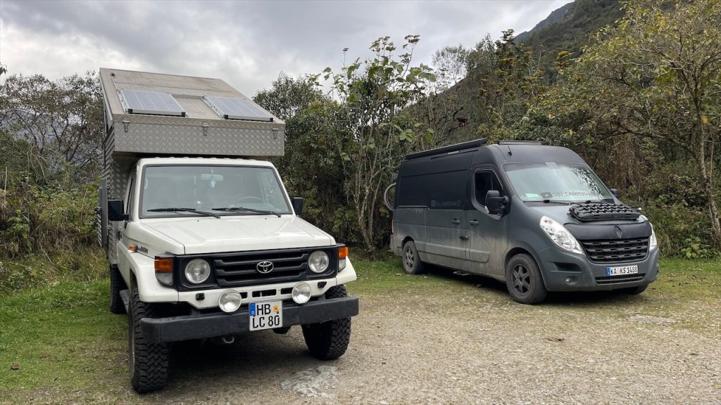 Am Tag darauf statteten wir dann noch dem auf über 4.000 Metern üNN gelegenen Teil des Nationalparks einen Besuch ab. Wie sich herausstellte war dieser viel schöner, da es hier keine hohen Bäume sondern nur Grasland gab welches den Blick auf mehrere Lagunen freigab. 😍 Allerdings auf Grund der Höhe auch deutlich kälter so dass wir uns plötzlich wieder in Winterjacke und Thermoleggings wiederfanden. 🙈 Der etwa dreieinhalb Kilometer lange Rundweg um die Laguna „Toreadora“ herum war bestens angelegt, mit Brücken und Holzdielen über sumpfige Stellen hinweg, und ein schöner Morgenspaziergang. Zu unserem Erstaunen sind uns in Ecuador nun auch schon einige „Normalreisende“ aus Deutschland sowie der Schweiz begegnet, so auch in diesem Nationalpark. Von dort aus mussten wir wieder zurück nach Cuenca fahren, was uns zwecks notwendigem Einkauf im Supermarkt aber auch ganz gelegen kam. Der Wocheneinkauf fiel mit 49 € leider weniger günstig als erhofft aus, obwohl wir stets sehr auf die Preise achten. Aber selbst das günstigste Päckchen Spaghetti kostete uns 0,89 €. Dafür war die Tankrechnung im Anschluss vergleichsweise billig: Für ungefähr 80 Liter Diesel mussten wir gerade einmal 35 € hinblättern. Somit hält sich das Ganze die Waage. Da wir die Ausläufer des Amazonasbeckens bisher ausgelassen hatten und diese in Ecuador verhältnismäßig einfach zugänglich sind fuhren wir weiter über die E40 und E45 in Richtung „Macas“. Außerdem würden wir uns so ein erneutes Auf und Ab über die Anden sparen die wir nun ja schon zur genüge kennen. Kurz vor Einbruch der Dunkelheit fanden wir einen perfekten Stellplatz: Direkt neben der Straße, aber von dieser her dennoch nicht einsehbar, mitten im Grünen und noch dazu eingerahmt von zwei Wasserfällen. Kurz zuvor hatte sich leider eine Warnleuchte auf unserem Tacho Display gemeldet und das Auslesen des Fehlerspeichers wies auf einen Defekt am Luftmassenmesser hin. 😯 Ob wir deswegen eine Werkstatt aufsuchen werden müssen und was wir im Tiefland alles erleben werden verrate ich euch dann nächste Woche.