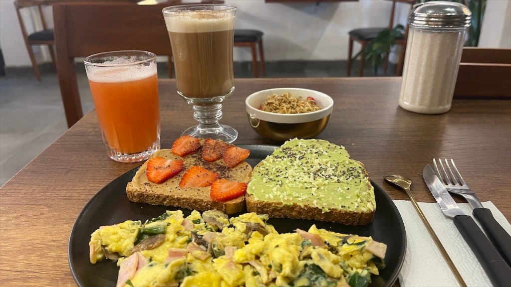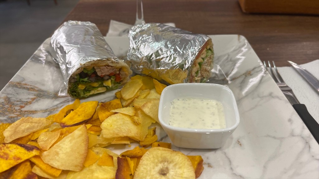 Am nächsten Morgen steuerten wir direkt das „Café NAAM“ an und tatsächlich waren wir bereits beim Betreten des Lokals sehr vom Ambiente angetan. Auch das WLAN war, wie erhofft, richtig schnell so dass wir uns für je 4$ ein leckeres Frühstück bestellten. Dieses beinhaltete neben einer Tasse Cappuccino und einem Glas Saft je eine Scheibe Avocado- sowie eine Scheibe Erdnussbutter Toast plus eine große Portion Rührei mit Spinat, Schinken und Champignons. 👍 Als den beiden Laptops der Saft ausging zogen wir uns für eine kleine Mittagspause in den Van zurück. Unsere europäischen Stecker hatten leider nicht in die Dosen des Cafés gepasst und einen passenden Adapter hatten wir nicht dabei. Da das Café über Mittag jedoch sowieso für zwei Stunden seine Pforten schloss kam uns die Pause gar nicht so ungelegen. 😉 Pünktlich zur Wiederöffnung um 16:30 Uhr kehrten wir zurück und schafften es bis zum Abend tatsächlich, alle Uploads inklusive Beschreibungen etc. fertigzustellen. Zur Belohnung und als Dank an die Cafébetreiber gönnten wir uns dort noch ein Abendessen. Auch die Wraps standen dem Frühstück in nichts nach so dass der Tag rundum gelungen war.