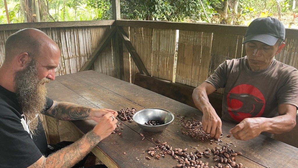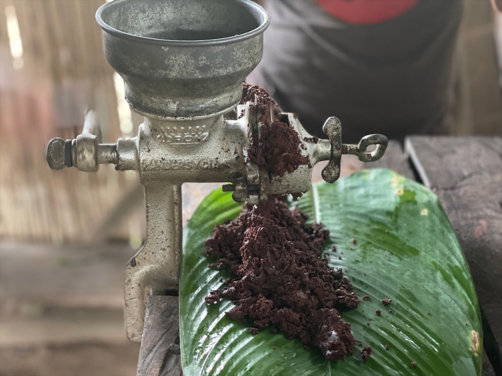 Die neue Woche begann mit einem sehr heftigen sowie lange andauernden Regenschauer weswegen wir den Stellplatz am Fluss deutlich später als geplant verließen, nämlich als der Regen gegen Mittag aufhörte. Von dort aus fuhren wir noch ein paar Kilometer weiter die schmale Asphaltstraße entlang bis wir an einer kleinen, privaten Kakao Farm angelangten. Sofort wurden wir freundlich von den Inhabern empfangen welche sich sogleich daran machten, uns den gesamten Kakao Prozess zu erklären. Von der Frucht bis hin zum fertigen Kakao Produkt. Auf ihrem etwa 2ha großen Gelände gedeihen rund 2.000 Kakaobäume und jede Frucht enthält ca. 30 bis 40 Kakaobohnen. Die Bohnen werden sechs bis acht Tage lang in der Sonne getrocknet und dann beginnt der Röstprozess auf offenem Feuer welcher uns live demonstriert wurde. Unter ständigem Wenden werden die Kakaobohnen ca. 20 Minuten lang geröstet. Anschließend wird per Hand die Schale entfernt wobei wir ebenfalls helfen durften. Danach werden die noch lauwarmen Bohnen gemahlen und auch hier durfte sich Simon am Fleischwolf betätigen. Heraus kommt, dank des enthaltenen Kakao Öls, eine cremige und lecker duftende Kakaopaste. Diese wird mit einem Löffel verfestigt und zu einem großen, flachen Rechteck gepresst. Am Ende wird das Ganze kurz auf den Tisch geschlagen damit sich das Kakao-Öl gut verteilt was leicht an der daraufhin glänzenden Oberfläche zu erkennen war. Bereits nach zwei bis drei Minuten im Gefrierfach ist die naturbelassene Kakao Masse fest und gebrauchsfertig. Nachdem wir dieser sehr interessanten Demonstration beiwohnen durften ging es an die Verkostung. Aus den verbliebenen Schalen der Bohnen wird ein Tee hergestellt welcher mit einem Schuss Limettensaft verfeinert wird. Wahrscheinlich schmeckte er deshalb eher nach Zitrus als nach Schokolade aber sehr lecker war er definitiv! Dazu gab es eine knusprige Yucca Tortilla mit Käsefüllung und selbstverständlich ein Kännchen heiße Schokolade. Pro Tasse werden übrigens etwa 5 Kakaobohnen benötigt (in Form der gepressten Masse). Bei deren Zubereitung ist es unabdingbar, die Kakaomasse zuerst in heißem Wasser zu schmelzen damit sich das darin enthaltene Fett lösen kann. Erst dann darf man Milch zugeben. Würde man versuchen den Kakao direkt in Milch aufzulösen, so wie ich letztes Mal mit dem auf dem Salkantay Trek gekauften Kakao, dann würde sich beides nicht richtig miteinander vermischen. Nun weiß ich Bescheid und kann es beim nächsten Mal richtig machen. 😉 Für all das verlangte die Familie gerade einmal 2 USD pro Kopf weshalb wir gerne ein bisschen Trinkgeld dazu gaben. Wir fuhren die Straße wieder zurück, erneut vorbei am „Balneario“ in Richtung „Baños“. Die Straße dorthin wird auch die „Wasserfall Route“ genannt weil sich hier, mal wieder, ein Wasserfall an den Anderen reiht. Gegen 16:30 Uhr kamen wir an der „Cascada Encanto del Rocío de Machay“ an. Da es schon recht spät war erkundigten wir uns, ob wir auf dem dazugehörigen Parkplatz übernachten dürften. Die Frau hatte nichts einzuwenden und gegen einen kleinen Obolus von 1,50 USD p.P., welcher der Gemeinde zugutekommt, machten wir uns noch auf den Weg zum Wasserfall. Wegen des vorangegangenen Regens war der Weg bergab recht schlüpfrig und wie geahnt setzte es mich einmal kurz auf den Allerwertesten. Glücklicherweise konnte ich unversehrt weiter bis zur Kaskade gehen. Diese hatte ordentlich Wasser zu bieten und die Gischt des 80 Meter hohen Wasserfalls sprühte bis zu uns und der Aussichtsplattform herüber. Wir gingen noch einige Meter weiter durch den Regenwald bis zu einer Hängebrücke von wo aus wir auch noch den unteren, 20 Meter hohen Fall sehen konnten. 🙃