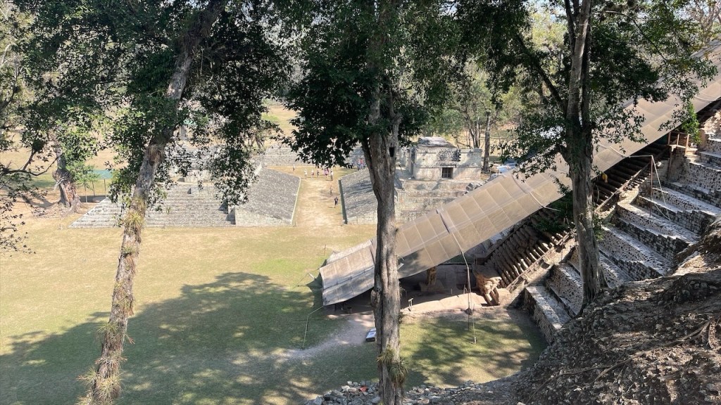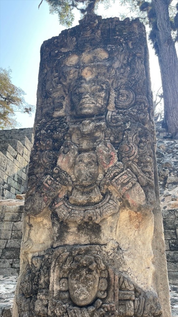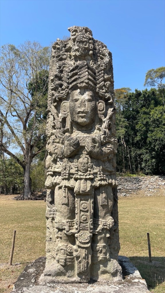 Nachdem wir die Eintrittsgebühr in Höhe von 20 Dollar pro Person entrichtet hatten betraten wir das weitläufige Waldgelände der Ruinen von Copán. Diese archäologische Stätte ist bekannt für ihre beeindruckenden Maya-Reliefs und -Skulpturen sowie für ihre gut erhaltenen Hieroglyphenstufen. Die Steinstelen, die mit detailreichen Verzierungen versehen waren, faszinierten uns besonders. Sie erzählen vergangene Geschichten von Herrschern, Göttern und historischen Ereignissen der Maya-Zivilisation.