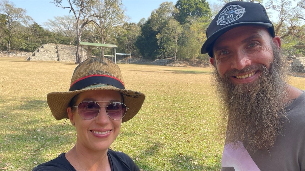 Nach dem langen Fahrtag war es eine Wohltat, endlich im Ort Copán Ruinas anzukommen. Dort wurden wir von Mauricio und seiner Frau Alicia herzlich empfangen, die mit ihren beiden Söhnen und einer Vielzahl von Tieren in einem sehr einfachen, aber gastfreundlichen Zuhause leben. Sie boten uns einen sicheren und ideal gelegenen Stellplatz hinter ihrem Haus an welches sich direkt gegenüber dem Eingang zur archäologischen Stätte befand.