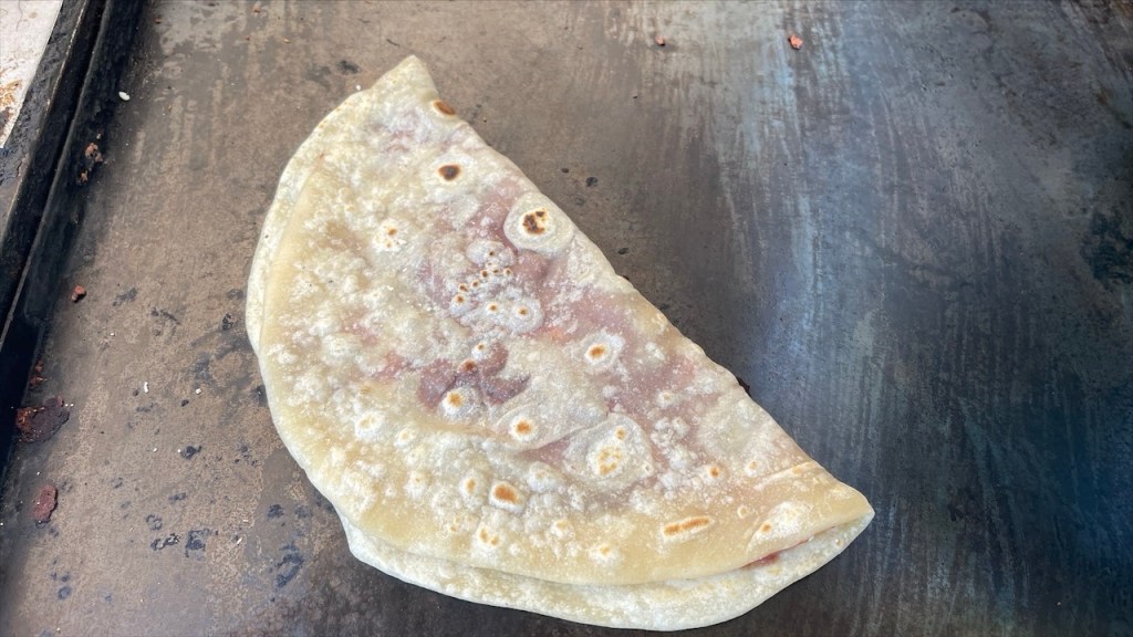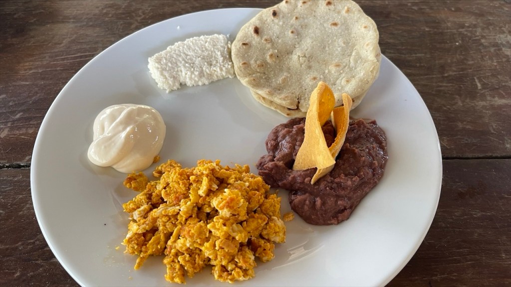Die letzte Etappe von La Entrada bis nach Copán Ruinas auf der CA-11 war glücklicherweise wieder in deutlich besserem Zustand. Dennoch war sie kurvenreich und bergig weshalb unsre Geschwindigkeit kaum zunahm. Glücklicherweise machten wir unterwegs eine köstliche und preiswerte Pause mit Baleadas und Pupusas – zwei lokale Köstlichkeiten, die man unbedingt probieren sollte! 😋