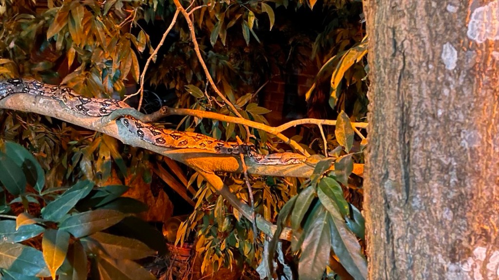 Am Abend feierten wir unseren erfolgreichen Grenzübertritt in einem traditionellen Lokal, das voller Einheimischer war, bei ein paar leckeren und preiswerten Pupusas: Gefüllte Mais- oder Reistortillas die, wie schon zuvor in Honduras, auch in El Salvador eine beliebte Spezialität sind. Zu unserem großen Erstaunen konnten wir dort in einem Baum, direkt neben den Esstischen auf der Terrasse mit Seeblick, sogar eine wilde Boa Imperator entdecken. Was für ein aufregender Start in Land Numero 14 unserer Reise! 🌎
