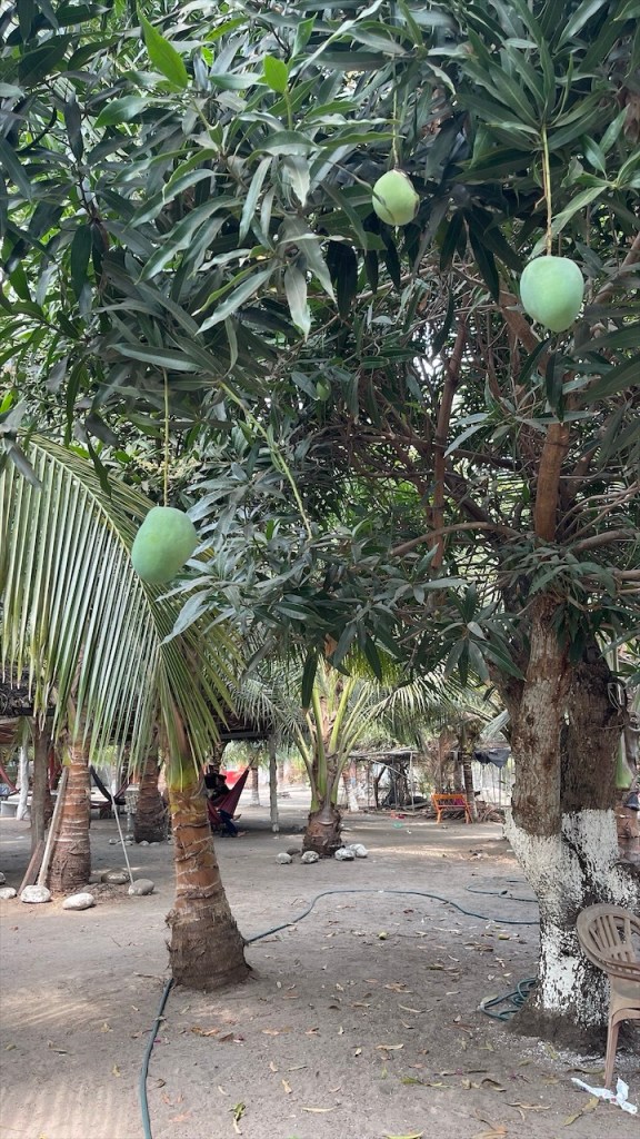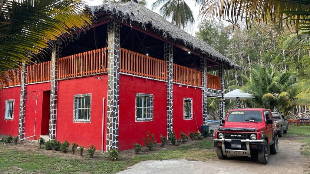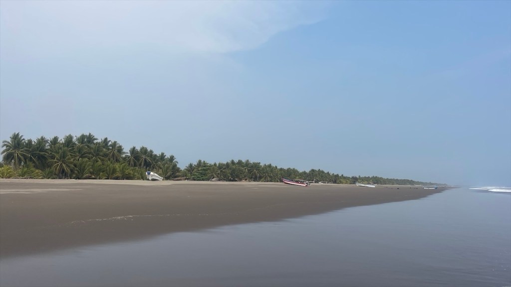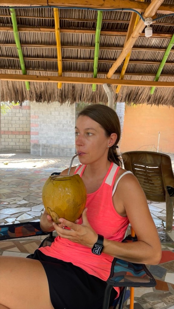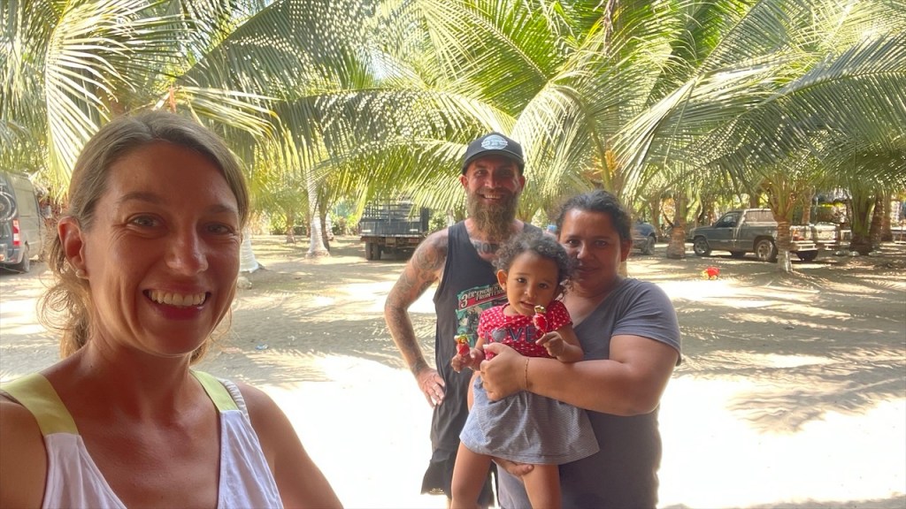 Tatsächlich wurden wir sofort freundlich von Mayra und ihrem Mann Hector sowie den beiden Kleinkindern in Empfang genommen. Wobei ich an der Stelle nicht verschweigen möchte dass Hector, vorangegangene Beziehungen miteinberechnet, in Summe 14 Kinder hat. 🙈 Sie boten uns sofort ein paar frische Kokosnüsse als Erfrischung an und schälten eine bereits braune Nuss für uns, in deren Inneren sich tatsächlich eine Art Apfel befand. Wie unglaublich vielfältig Kokosnüsse doch sind! 🌴🥥 Anschließend spazierten wir den breiten, ebenfalls von Kokosnusspalmen und kleinen Fischerboten gesäumten Strand entlang an dessen Ende, ganz in Nähe der verwaisten Restaurants, unglaublich viel Müll im Sand lag. Da war es wieder, das altbekannte Problem ab Peru aufwärts: Die mangelnde Sorge für die Umwelt. 😢 Auch Mayras Sohn hatte zuvor den ihm von uns dargebotenen Lolli mit Handkuss entgegengenommen, die Verpackung jedoch einfach achtlos auf den Boden des eigenen Grundstücks geworfen wo sie dann einfach liegen geblieben wäre – hätte ich sie nicht entsorgt. Wohlgemerkt, obwohl seine Mutter das gesehen hatte, versteht sich. 🤷♀️