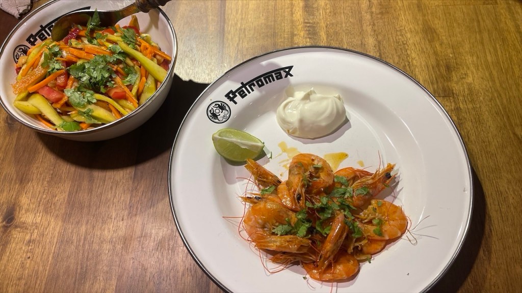 Am Abend ließen wir uns die fangfrischen Fische und Meeresfrüchte schmecken die wir in unserer kleinen, aber feinen Van-Küche selbst zubereiteten. Und dank der angenehmen Lage in den Bergen, auf 1.200 Metern über dem Meeresspiegel, konnten wir sogar einen angenehm kühlen Abend sowie eine frische Nacht genießen und erholsam schlafen. 🌙⭐😴