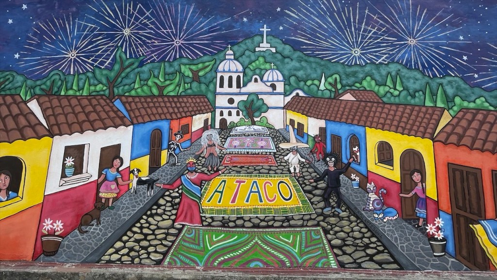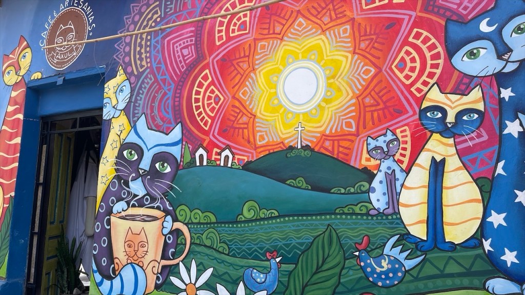 Die Straßen waren gesäumt von Ramsch- und Souvenirläden und die Bimmelbahnen, die die Touristen durch die Straßen kutschierten, trugen nicht unbedingt zum Charme des Ortes bei. Es schien, als hätten sich ganze Heerscharen an inländischen Touristen auf den Weg gemacht um Ataco zu besuchen. 🙈 Möglicherweise ein weiterer Verdienst von Präsident Bukele und der verbesserten Sicherheitslage des Landes, die einen solchen Zustrom nun ermöglicht.