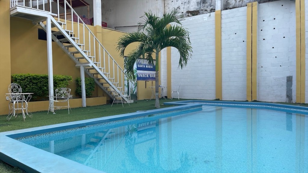 Eine schnelle Recherche auf iOverlander führte uns zu einem Hotel in Grenznähe, das sich als wahrer Glücksgriff entpuppen sollte: Der Parkplatz im Innenhof war nahezu leer und der freundliche Rezeptionist gestattete uns sogar die Nutzung des kleinen Pools. Außerdem öffnete er, exklusiv für uns, ein Hotelzimmer so dass wir Zugang zu Toilette und heißer Dusche bekamen was nach dem langen Tag natürlich mehr als willkommen war. 😊