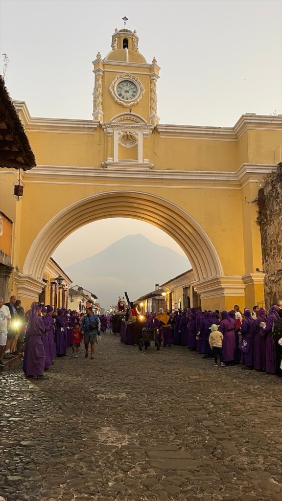Antigua, auch bekannt als Alt-Guatemala, war einst die Hauptstadt der spanischen Kolonien in Zentralamerika und begeisterte uns mit ihrem historischen Charme und ihrer lebendigen Atmosphäre während der Semana Santa (Karwoche vor Ostern) sofort.