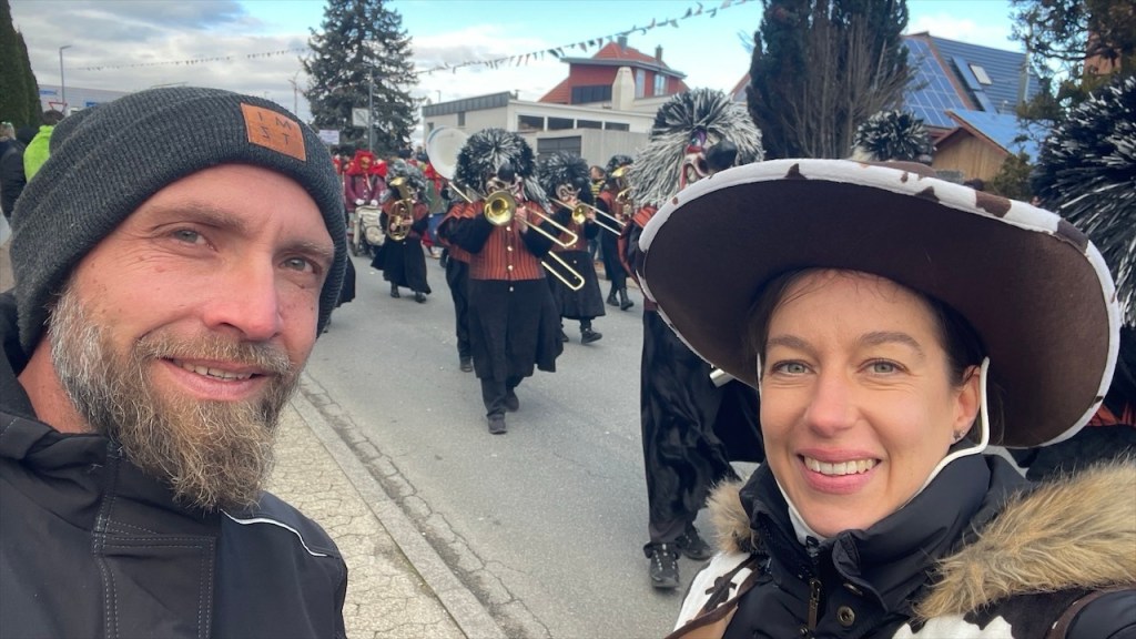 Zum ersten Mal seit acht Jahren – zuletzt fand er 2017 statt – schlängelte sich der bunte, närrische Bandwurm mit über 80 Gruppen durch die abgesperrten Hauptverkehrsstraßen des Ortes. Unsere Freunde hatten zwar einen Platz mit guter Sicht gewählt, aber strategisch gesehen war er eher suboptimal: Wir standen nämlich fast am Ende der Zugstrecke und mussten rund 45 Minuten warten, bis die ersten Gruppen bei uns ankamen. Noch dazu pfiff der böige, frische Wind genau in unsere Richtung, sodass wir bereits nach anderthalb Stunden ordentlich durchgefroren waren. Schließlich entschieden wir, den Rest des Umzugs ausfallen zu lassen und uns entlang der Strecke langsam auf den Rückweg zu meinem Elternhaus zu machen – unserem gemütlichen und vor allem warmen Quartier auf Zeit. ♥️