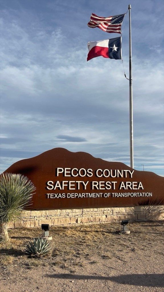 Bis zum Abend schafften wir recht entspannt 390 Kilometer bis zur Pecos County Rest Area East Bound. Diese war unglaublich modern und ähnelte eher einem Nationalpark Visitor Center als einem schnöden Rastplatz an der Autobahn.