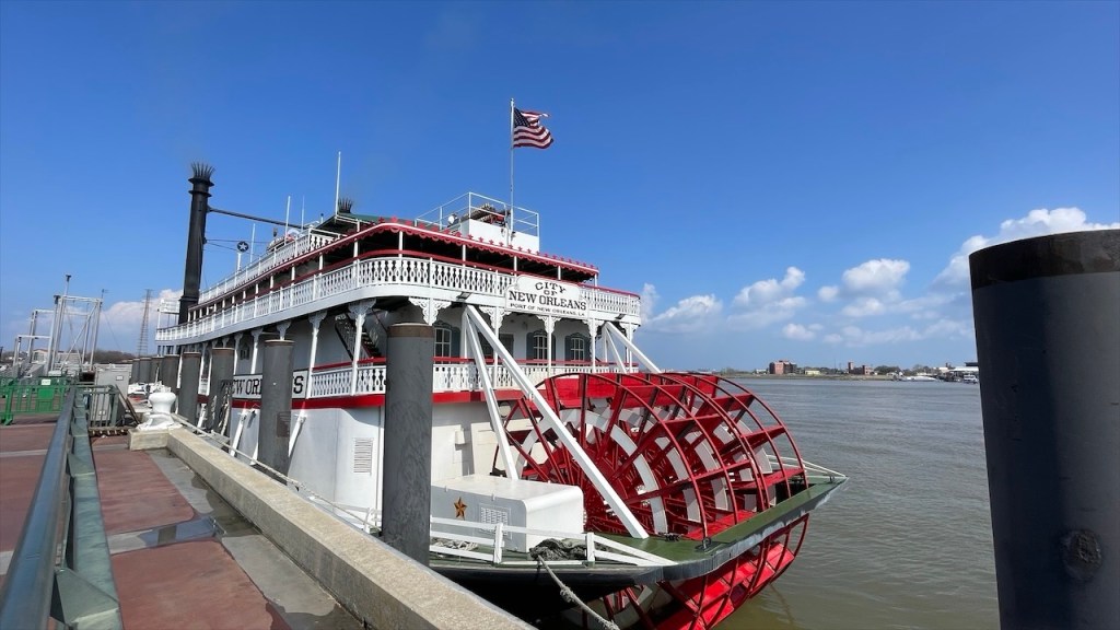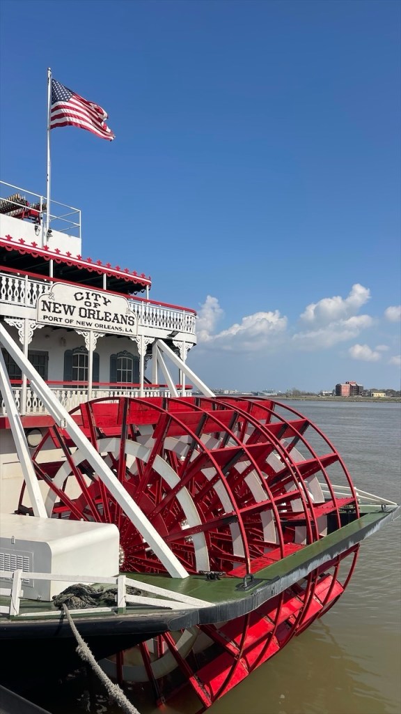 Als die Gassen uns langsam zu trubelig wurden, suchten wir Weite an der Mississippi Waterfront. Dort beobachteten wir einen historischen, dampfgetriebenen Schaufelraddampfer auf dem mächtigen Mississippi – träge und majestätisch.