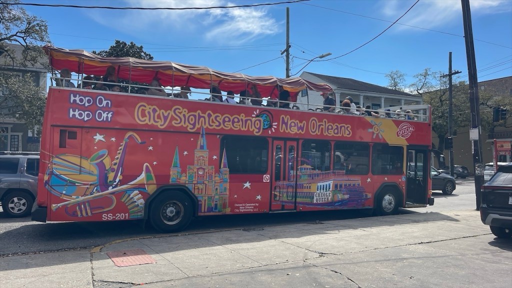 Direkt gegenüber, bei der St. Basin Station, befindet sich eine Haltestelle des Hop-On Hop-Off Busses – falls man New Orleans nicht zu Fuß erkunden möchte.