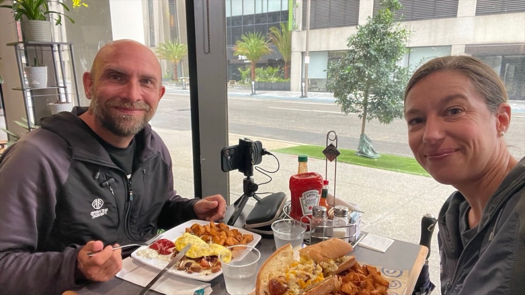 Ich bestellte einen Breakfast Po’boy – ein typisches Sandwich auf französischem Brot, hier gefüllt mit Rührei, Wurst, Käse und allem, was die Südstaaten-Küche herzhaft macht. Sättigend? Absolut. Leicht? Ganz sicher nicht. 😅