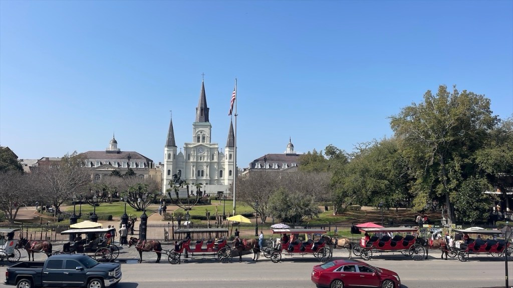 Natürlich ließen wir uns auch den Jackson Square nicht entgehen, mit Blick auf die strahlend weiße St. Louis Cathedral. Künstler stellten ihre Bilder aus, Straßenmusiker spielten, Besucher fotografierten – ein lebendiger Platz.