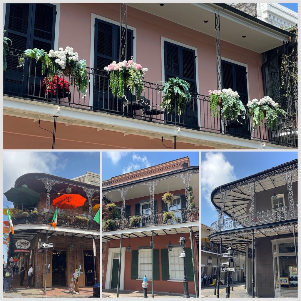Wir schlenderten die Bourbon Street entlang, bogen später in die etwas elegantere Royal Street ab. Schmiedeeiserne Balkone, üppige Blumenampeln, pastellfarbene Häuserfassaden – jedes Gebäude wirkte wie eine Filmkulisse.