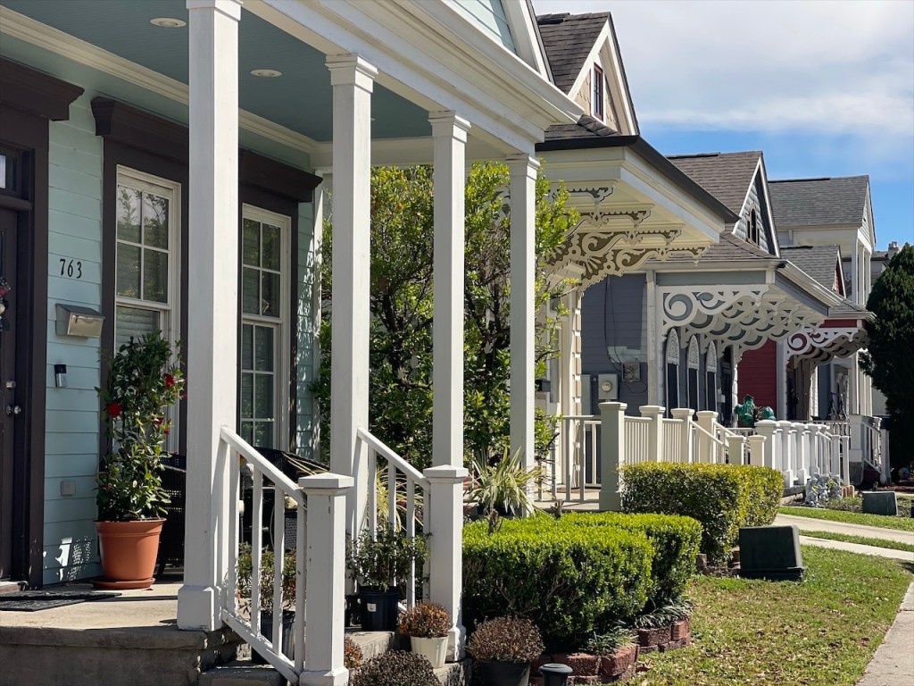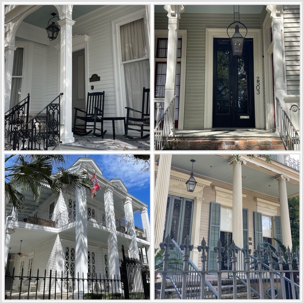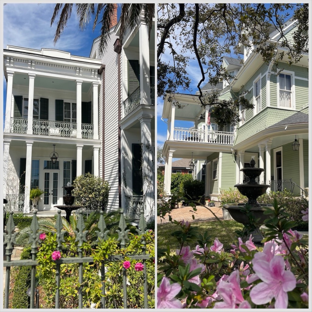Schon beim ersten Schritt in dieses Viertel hatten wir das Gefühl, in eine andere Zeit einzutauchen. Breite Alleen, gesäumt von prächtigen Villen aus dem 19. Jahrhundert. Veranden, die sich um ganze Häuser ziehen. Schaukelstühle, die leise im Schatten wippen. Perfekt gestrichene Fensterläden in Pastellfarben. Gepflegte Vorgärten, in denen Magnolien blühten. Und immer wieder diese Gaslaternen, in denen echtes, flackerndes Licht brennt – kein Strom, sondern Gas. Ein Detail, das den historischen Charme noch greifbarer macht.