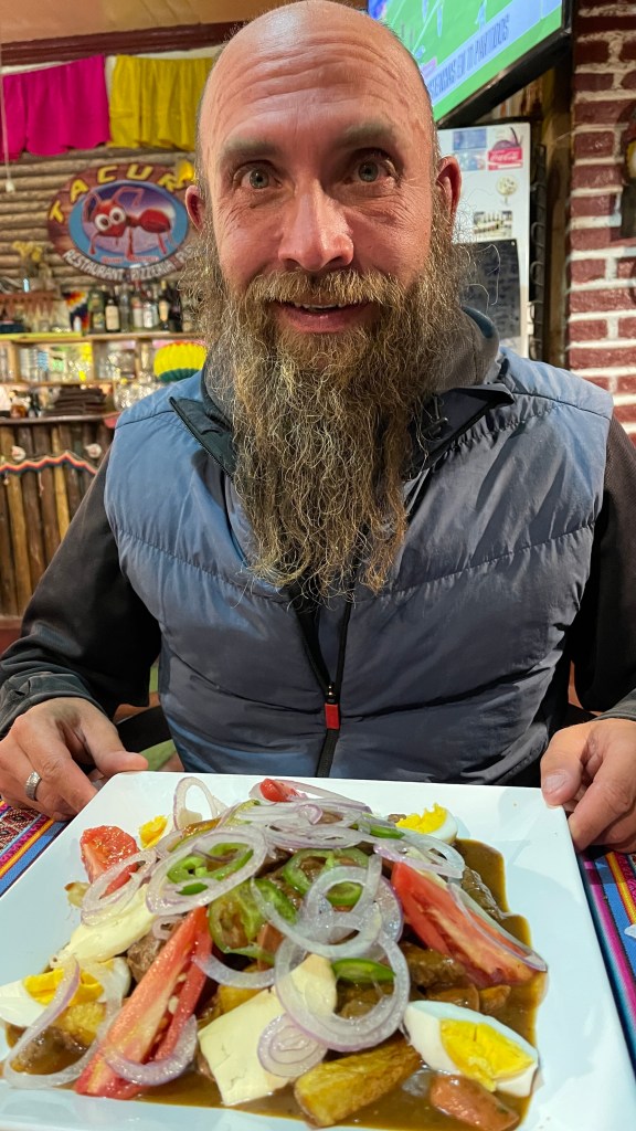 Nach einer Runde Yoga am Morgen zogen wir nach dem Frühstück los in die Innenstadt, um der großen Parade beizuwohnen. Die Tage zuvor waren jeweils die Kinder- und Jugendgruppen mit ihren Instrumenten durch die Straßen gezogen. Am Unabhängigkeitstag selbst, dem 25. Mai, zogen dann die Erwachsenen mit ihren Trachten- und Musikgruppen durch die Hauptstraßen „Sucres“. Wir schauten dem Spektakel ein Weilchen zu bevor wir uns den Menschenmassen wieder entzogen und stattdessen auf einen erfrischenden Eiscafé in einen der vielen hübschen „Patios“ einkehrten. 😋 Abends hatten wir uns mit Jessica und Yannick auf einen Burger im „FORESTER“ verabredet und tatsächlich sah das, was uns serviert wurde, ebenso schmackhaft aus wie auf den Plakaten außen an der Hausfassade. 🍔🍟