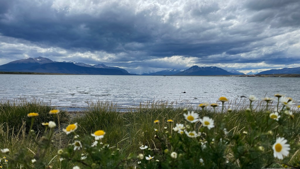 Am Montag fühlten wir uns wieder fit genug für eine weitere, aber deutlich kürzere sowie einfachere Wanderung. Es schien erneut die Sonne aber diesmal war der patagonische Wind in all seiner Härte wieder deutlich spürbar. 🌬 Zum Glück war es sowohl während unserer Tageswanderung als auch während unserer Tagestour super windstill. Nach dem wir gefrühstückt hatten verließen wir unseren Stellplatz und fuhren einige wenige Kilometer die Schotterpiste entlang bis zum „Mirador Laguna Larga“. Auf der Fahrt dorthin konnte ich tatsächlich einen ausgewachsenen, prächtigen Puma entdecken der ganz entspannt durch die Graslandschaft schlenderte. 😮 Wir stellten unseren Bus am Aussichtspunkt ab von wo aus ein kleiner Trampelpfad durch die hügelige Graslandschaft führte und immer wieder herrliche Blicke auf die Berge sowie die Gletscherlagunen feilbot. Entlang des Weges wuchsen auch einige „El Calafate“ Sträucher deren Beeren sowohl in Farbe als auch in Form der Heidelbeere ähneln. Allerdings haben sie viele Kerne und ich habe wohl keine einzige reife, süße Beere erwischt. Meine schmeckten alle säuerlich. 😣 Außerdem konnten wir wieder zahlreiche Guanacos erblicken. Bis zum Ziel der Wanderung, dem „Mirador Nordenskjöld“, waren es etwa dreieinhalb Kilometer. Und wie so oft: Sobald man sich etwas abseits der ausgetrampelten Pfade bewegt begegnet einem plötzlich keine Menschenseele mehr. 😊 Lediglich auf unserem Rückweg (leider gibt es hier im Nationalpark kaum Rundwege) trafen wir auf eine Busgruppe die sich gerade ein paar Meter vom Aussichtspunkt in Richtung Wanderweg entfernt hatte. Zurück am Bus windete es immer noch recht heftig weswegen wir einige Kilometer weiter bis zu einem der Eingänge in den Nationalpark fuhren. Dort fanden wir vor dem Ranger- bzw. Toilettenhaus etwas Schutz vor dem Wind. Nach der Kaffeepause nutzten wir noch einmal die Zeit um an den Laptops zu arbeiten bevor es abends auf Simons Wunsch hin mal wieder Thunfisch-Pizza gab. 🍕